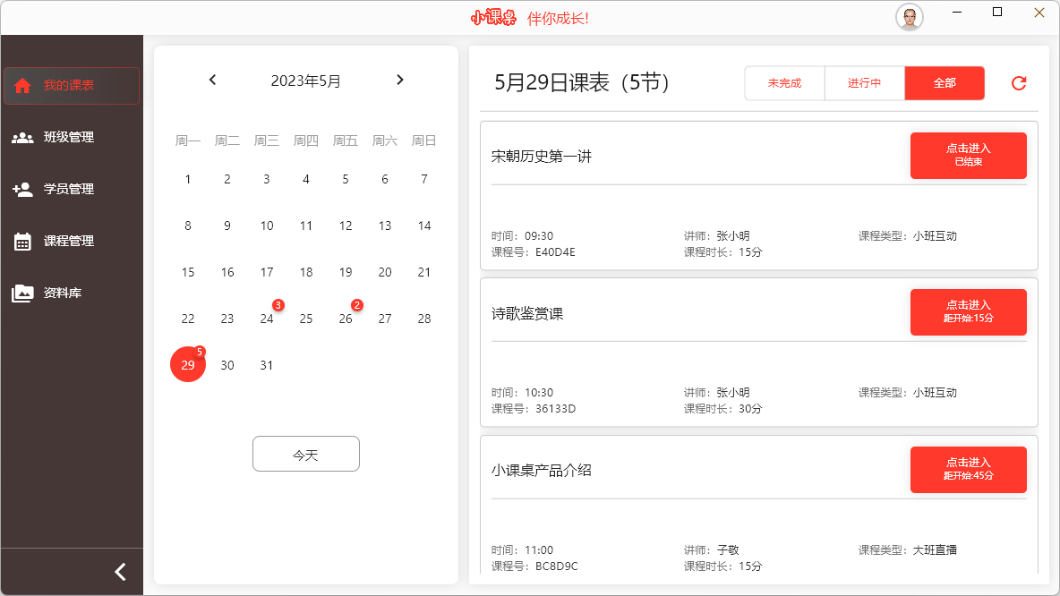 3. 提供课程及学员的管理功能 ,包括课程的创建、删除、修改、参课人员管理和查询等