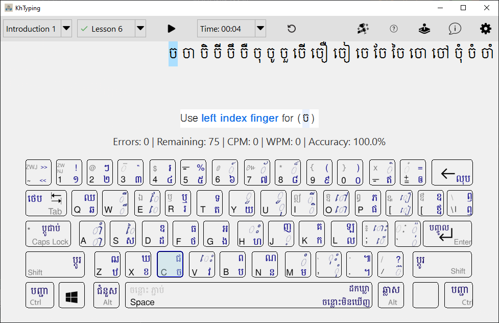KhTyping is an interactive and user-friendly typing application designed to help learners of all ages master the Khmer language through typing practice. Whether you're a beginner, a child, a teenager, or an adult new to computers, KhTyping offers a fun and engaging way to learn typing skills in Khmer. The application is ideal for those who want to improve their typing speed and accuracy while becoming familiar with the Khmer language.