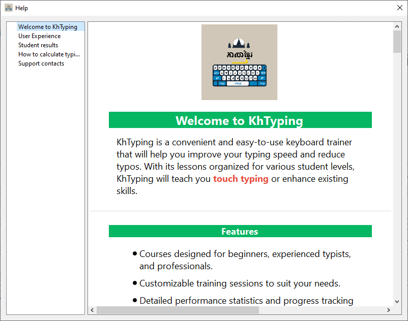 With a simple interface and clear instructions, KhTyping makes it easy for users to learn at their own pace. The app is designed to be accessible for everyone, from those just starting to use computers to experienced users looking to enhance their typing abilities in Khmer.