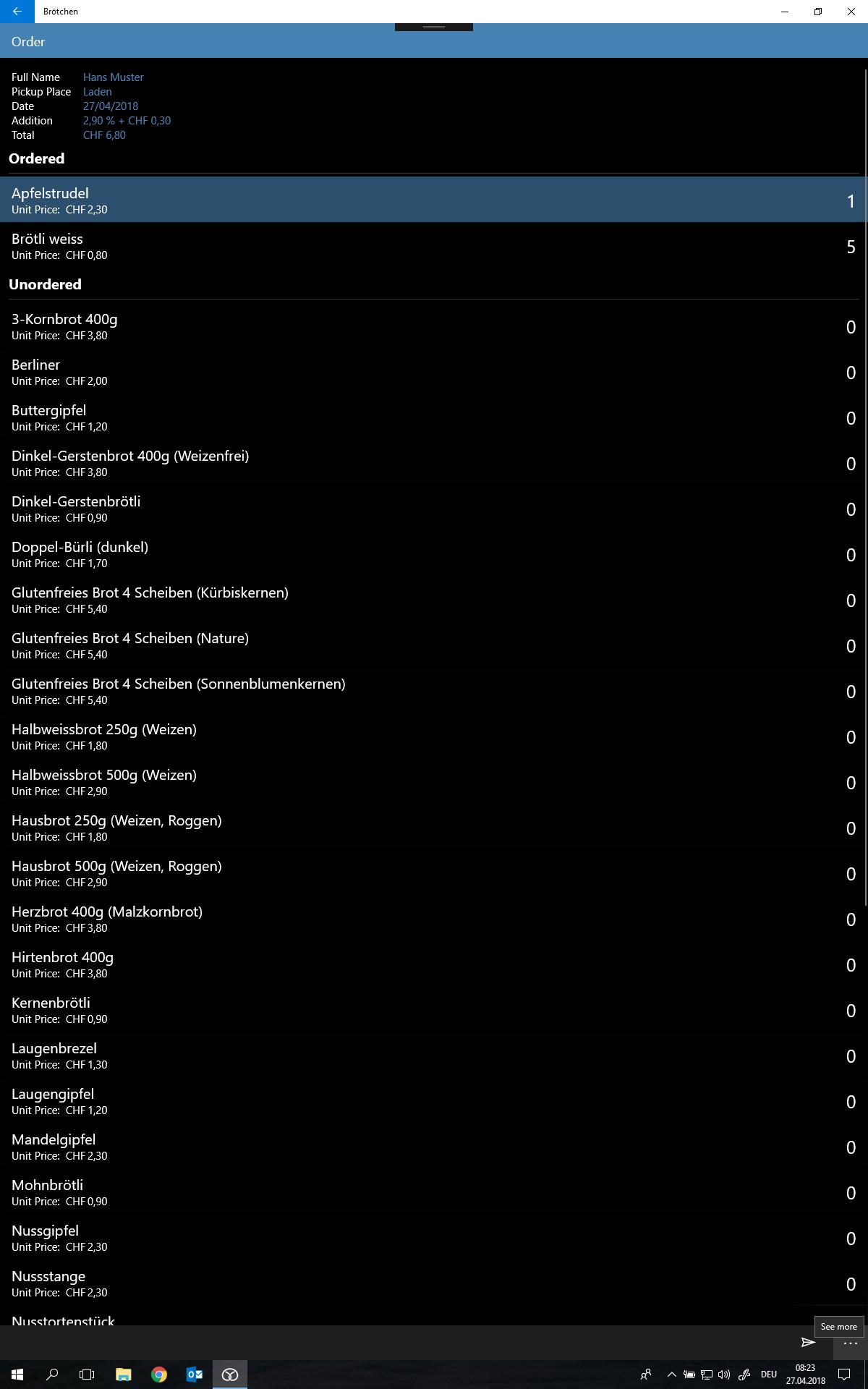 Die App erlaubt es bei einer Bäckerei Brötchen und andere Produkte zu bestellen.