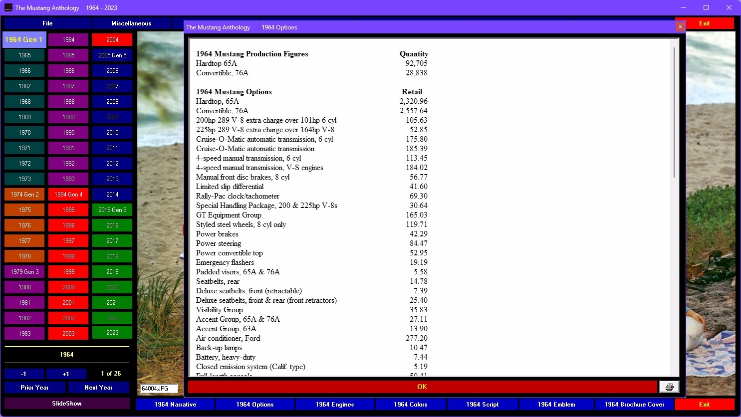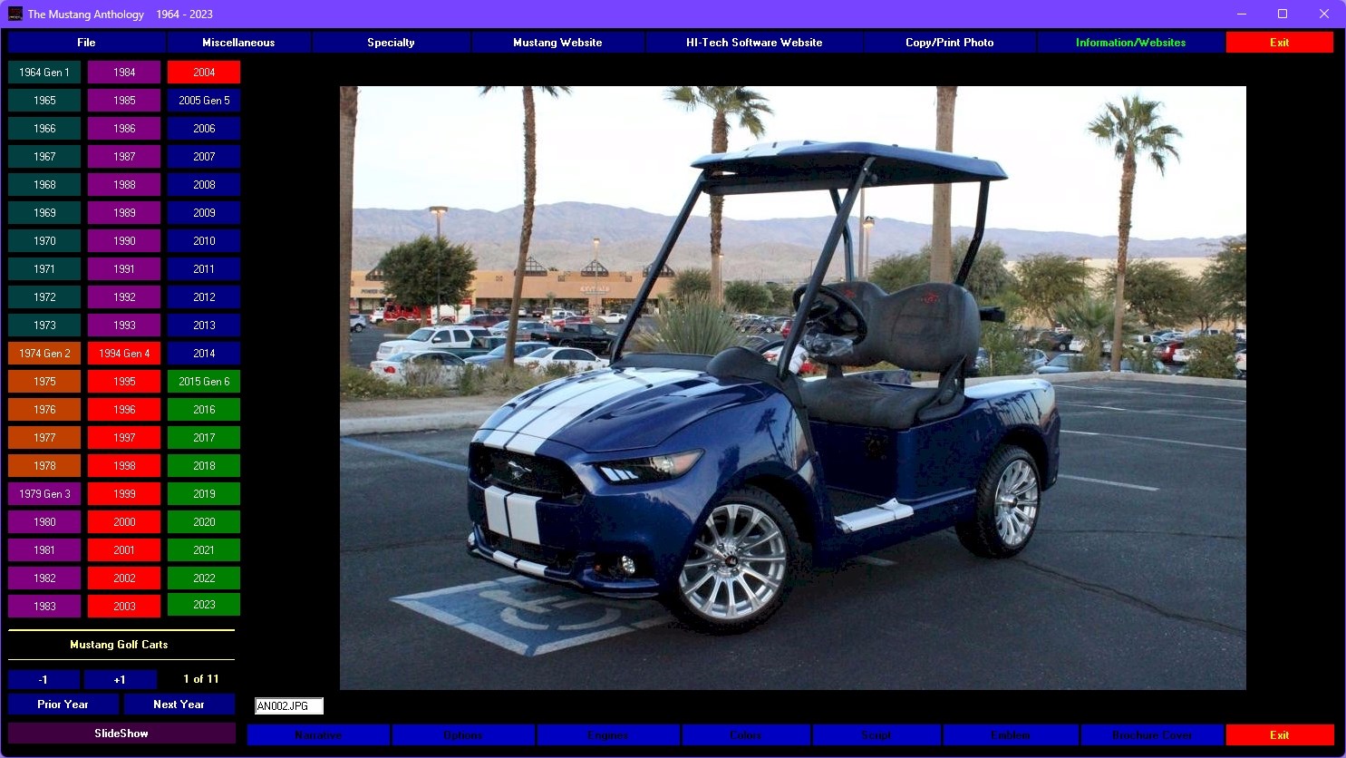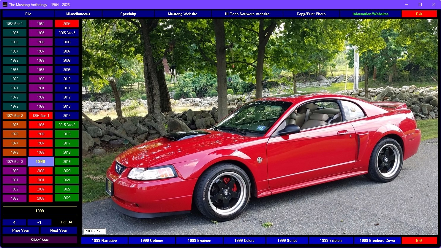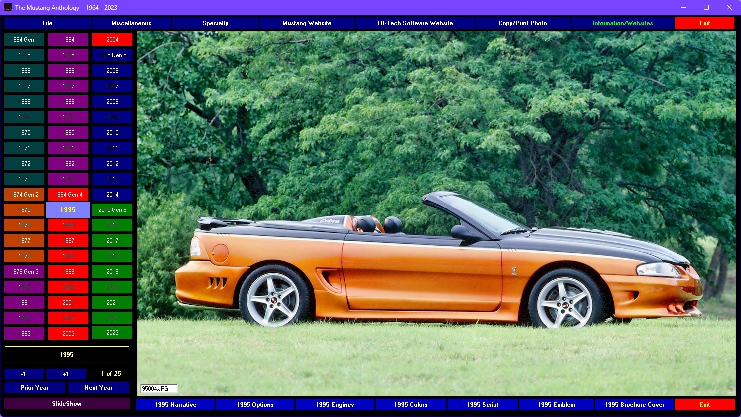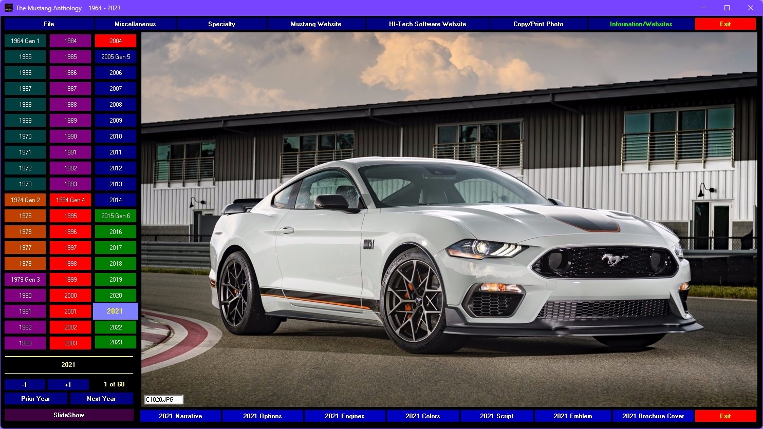 This digital encyclopedia of the Mustang Anthology contains well over 1800 high resolution (1200x730) photos, hundreds of graphics, narratives and more. It starts with the first 1964½ "Pony" cars and continues on to the latest great 2023 Mach I and revolutionary Mach E electric SUV supercars. Browse the statistics, the options, those tremendous horsepower muscle cars of the sixties, the Bullitts and the SVTs. It’s all here! Everything you want to know about every year. A must have for any Mustang owner or enthusiast!
