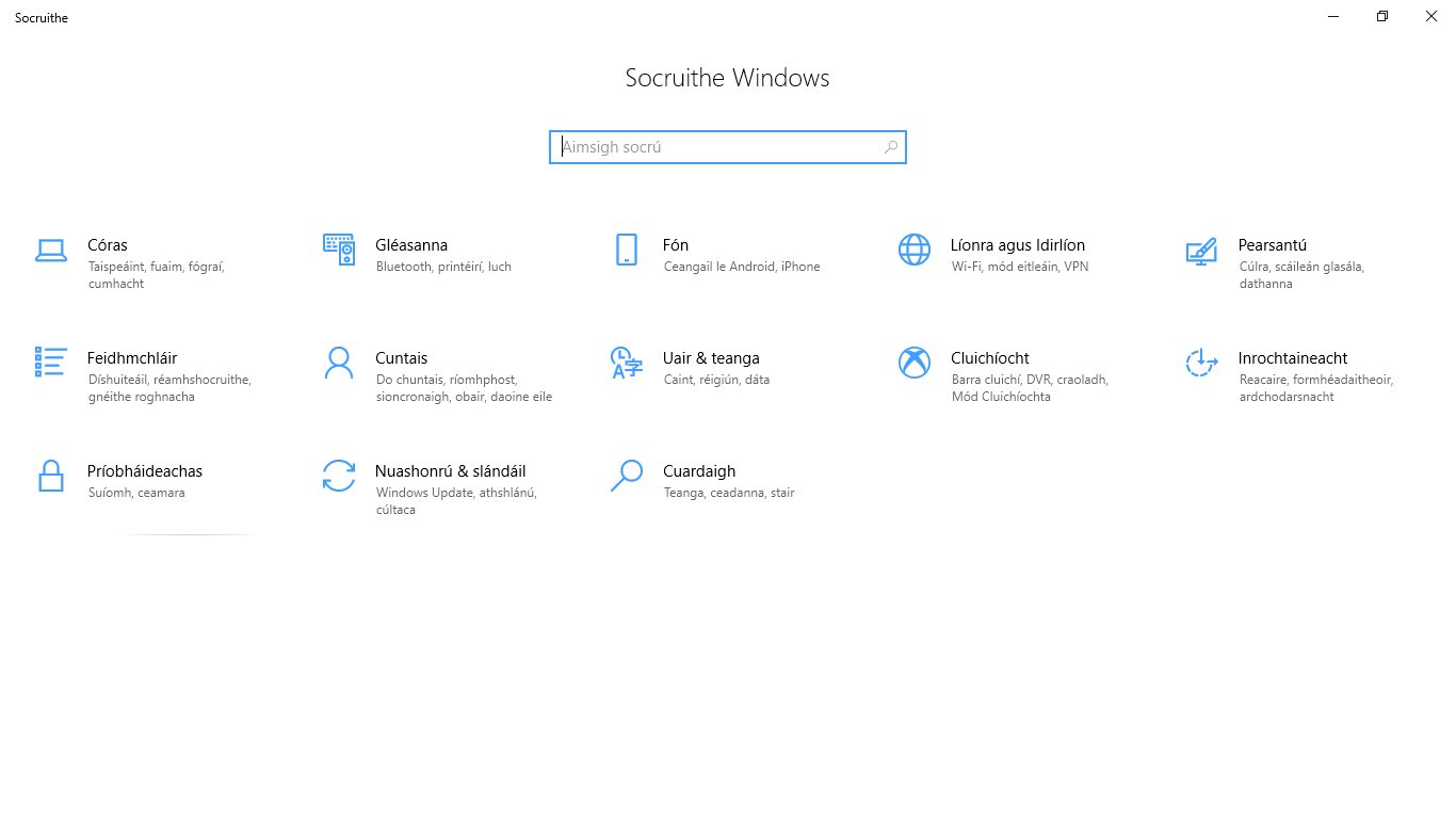 Tá nuashonruithe teanga saor in aisce á gcur ar fáil anois ag Windows trí Microsoft Store. Ciallaíonn sin gur féidir linn feabhsú leanúnach a dhéanamh ar do theanga áitiúil agus na nuashonruithe sin a sheoladh go huathoibríoch chuig do ghléas. Ach feidhmchlár Paca Eispéiris Logánta a shuiteáil, beidh an téacs Windows i do theanga cothrom le dáta i gcónaí.
