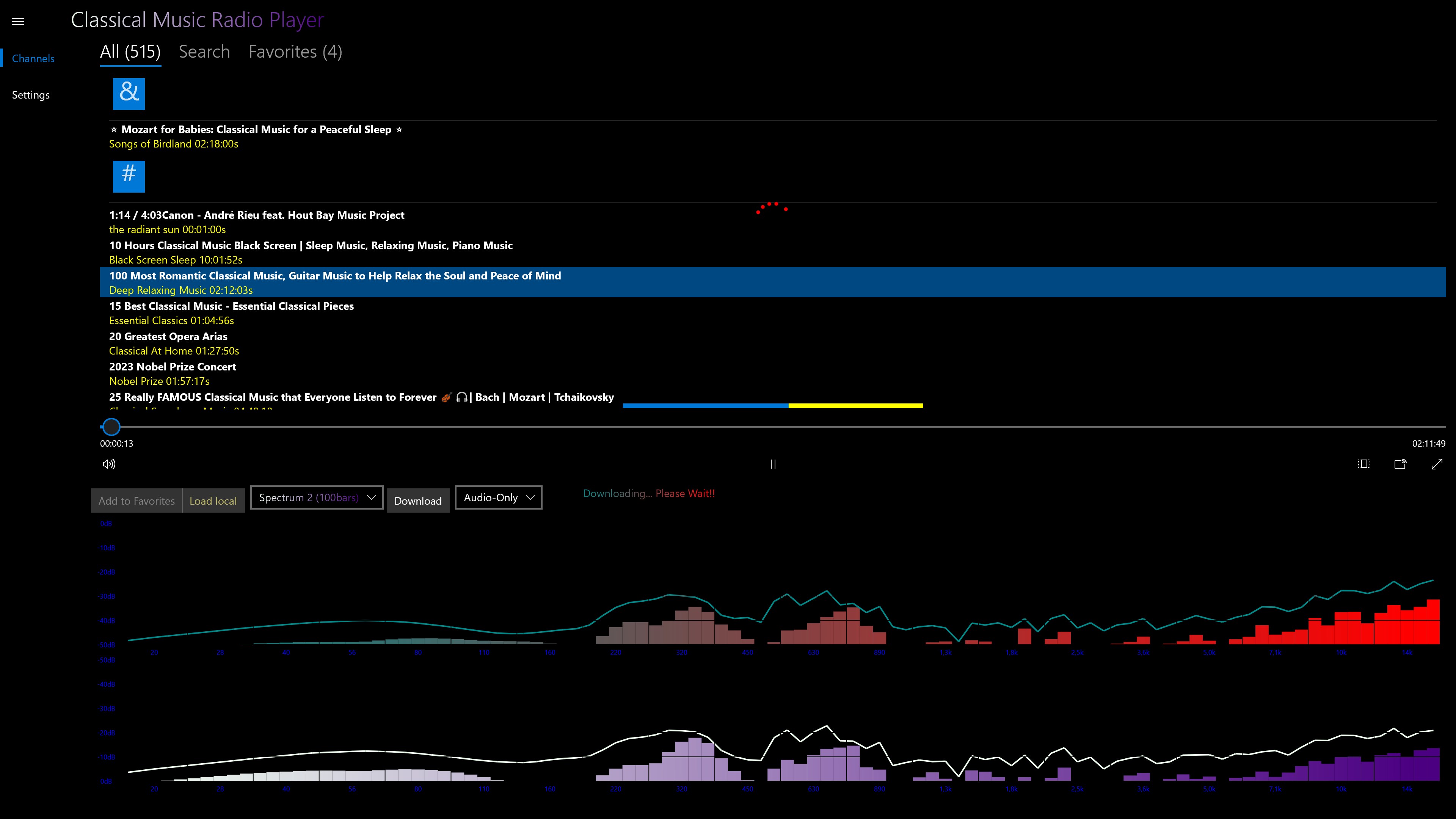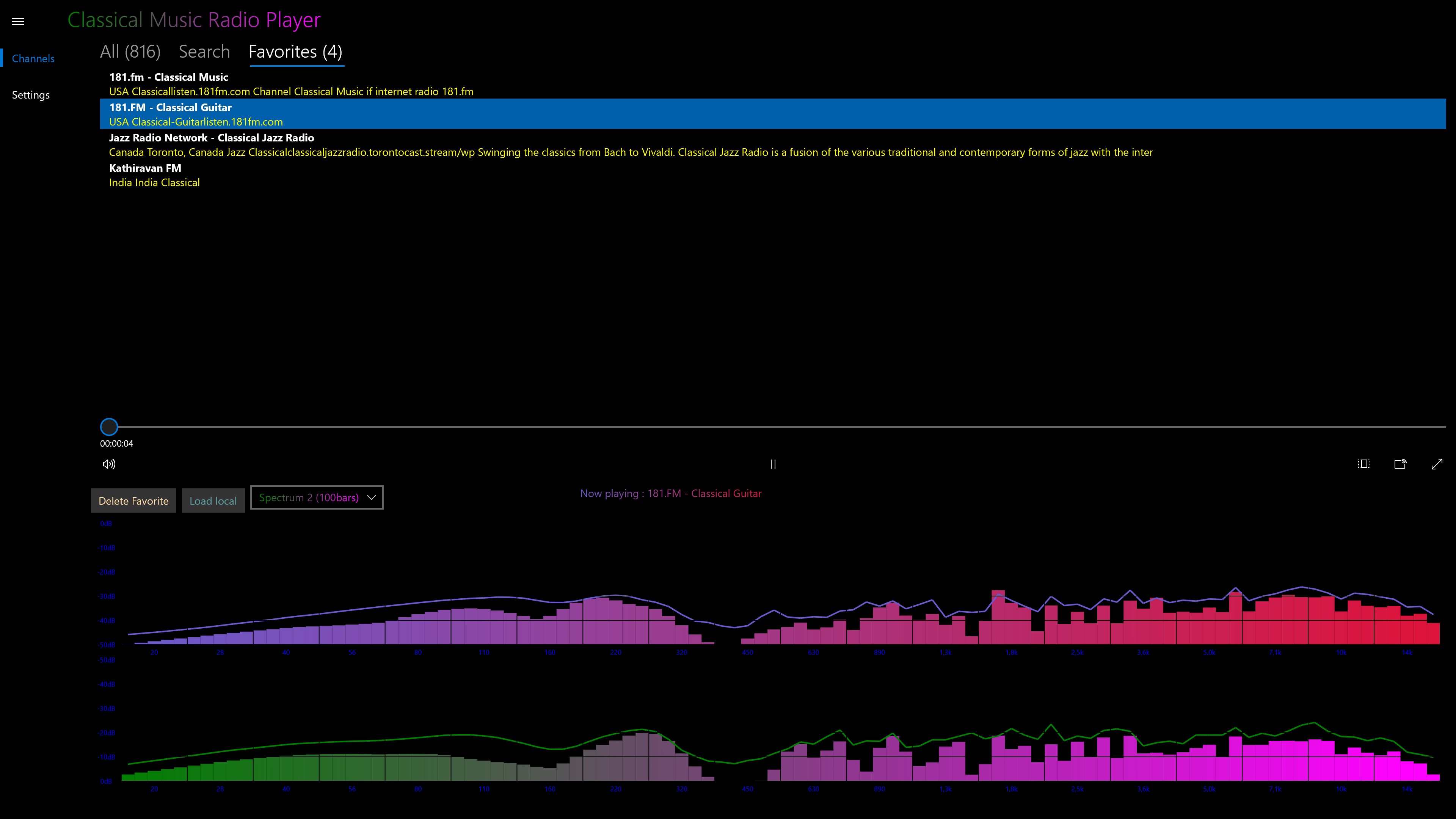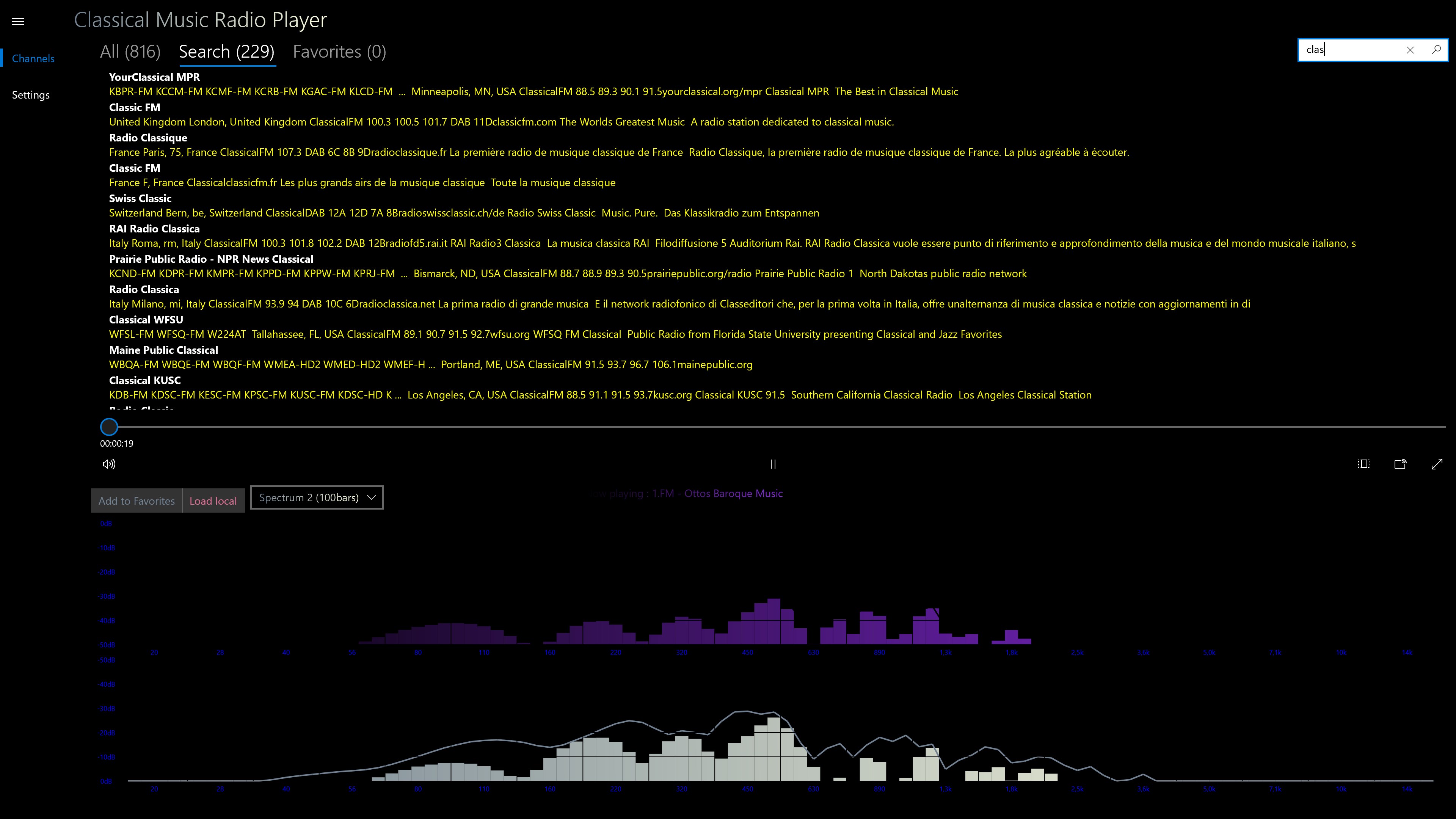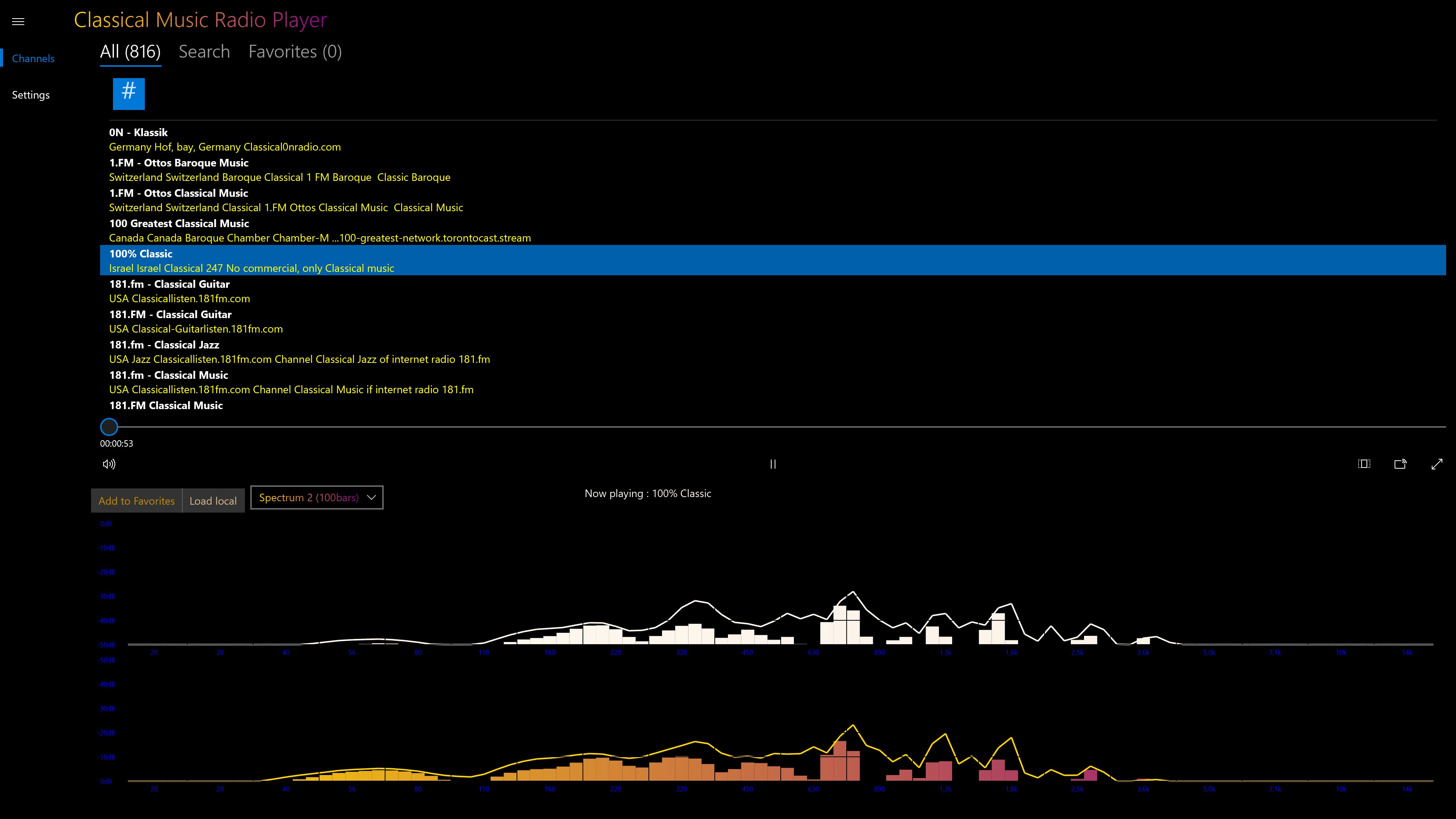 Search stations and/or add to Favorites List. Customize under Settings Audio Spectrum Analyzer.