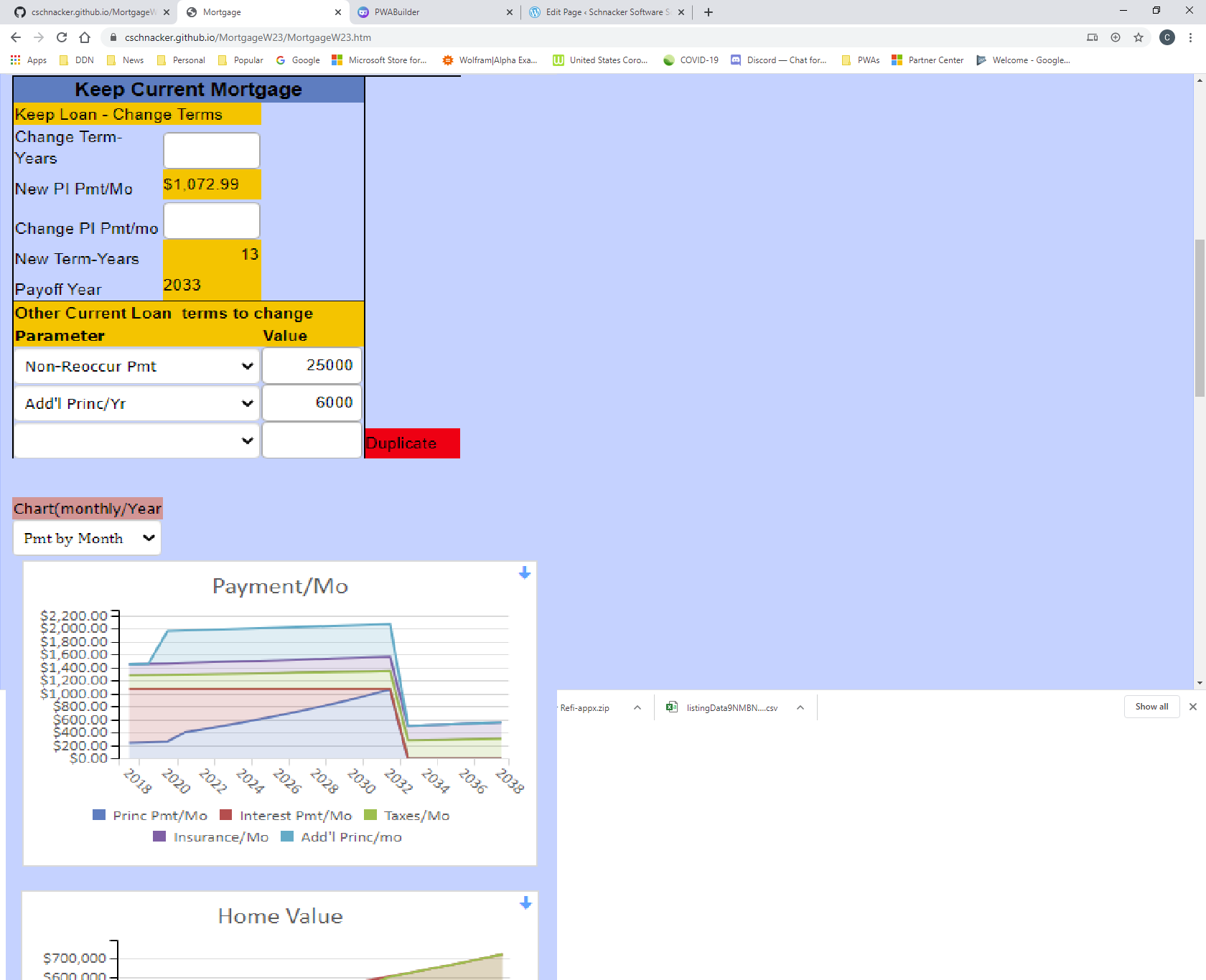 Refinance AnalyzerCurrent Mortgage AnalyzerAmortization TablePayment (PITI) graphEquity Graph