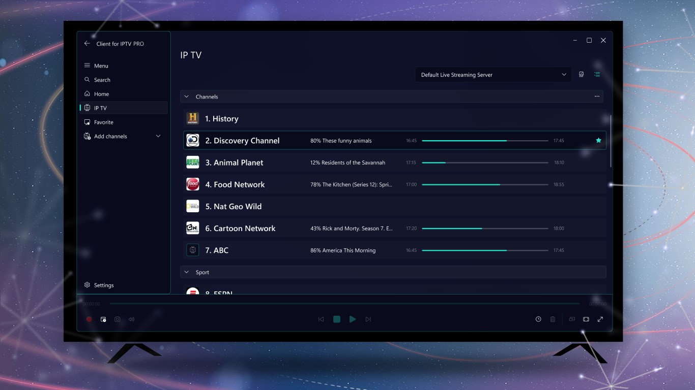 Client for IPTV is an innovative and feature-rich application designed to enhance your streaming experience. Now available for download on the Microsoft Store, this powerful app revolutionizes the way you consume TV shows, movies, sports, and live events. With its cutting-edge functionality and user-friendly interface, it's the ultimate solution for IPTV enthusiasts.