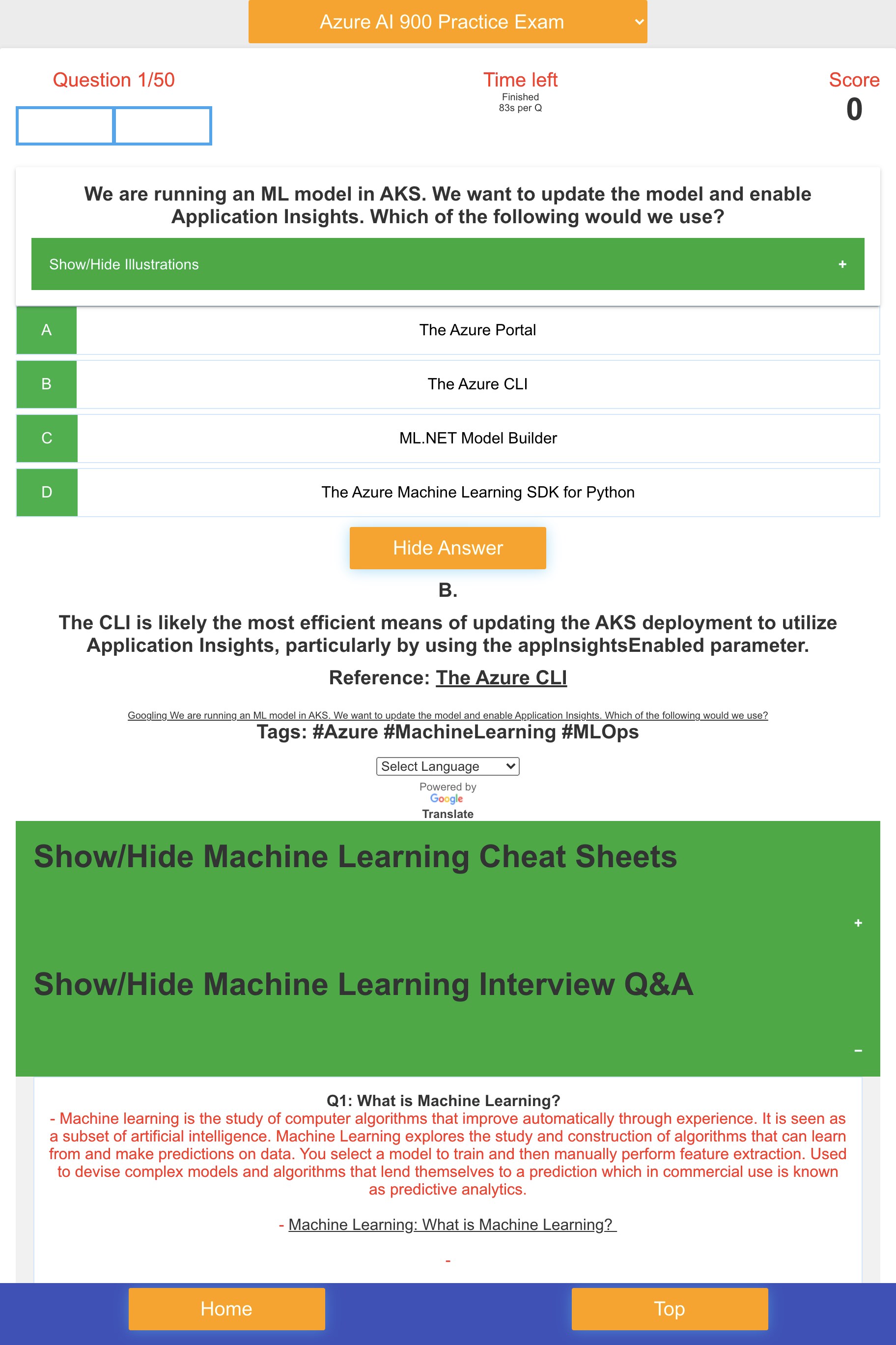 Azure AI-900 Q&AScore cardCountdown timerMachine Learning CheatSheetsMachine LearningMachine Learning Interview Questions and Answers Azure AI QuizAI 900Azure Machine LearningAzure AIAzure AI CertificationAzure NLPRegressionClassificationDeep LearningSupervised LearningNeural Networks Artificial IntelligenceLUISModeling