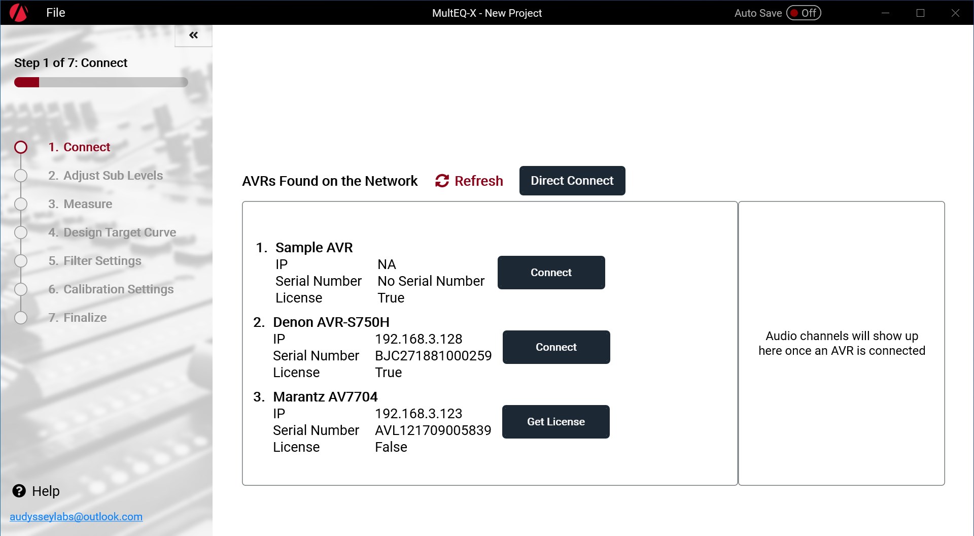 A virtual AVR is included with MultEQ-X for free in order to demonstrate the features and settings available. In order to calibrate an AVR, a license must be acquired through an in-app purchase. This license entitles the user to calibrate one AVR for the lifetime of the AVR. Licenses are per-user and per-AVR-serial-number, and are non-transferrable.