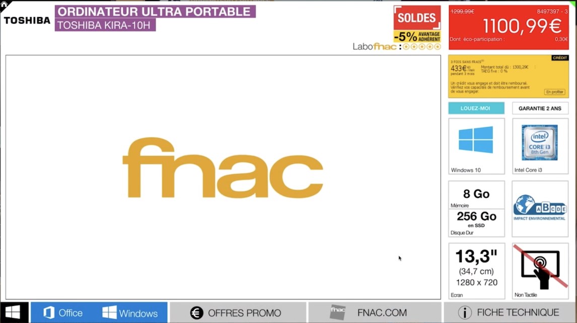 Digital price tags and product descriptions for Windows 10 PCs within retail stores. Includes demonstrations for Microsoft Windows 10 and Office 365.