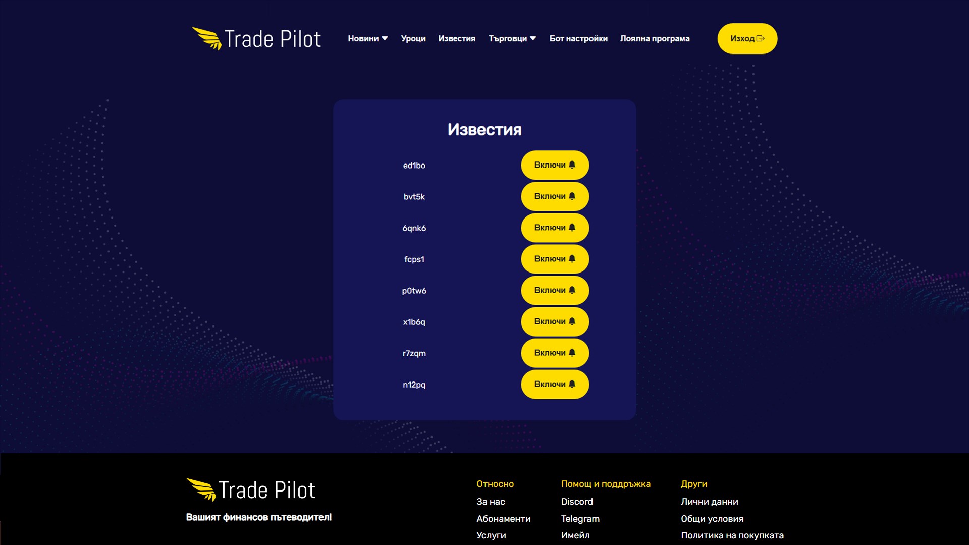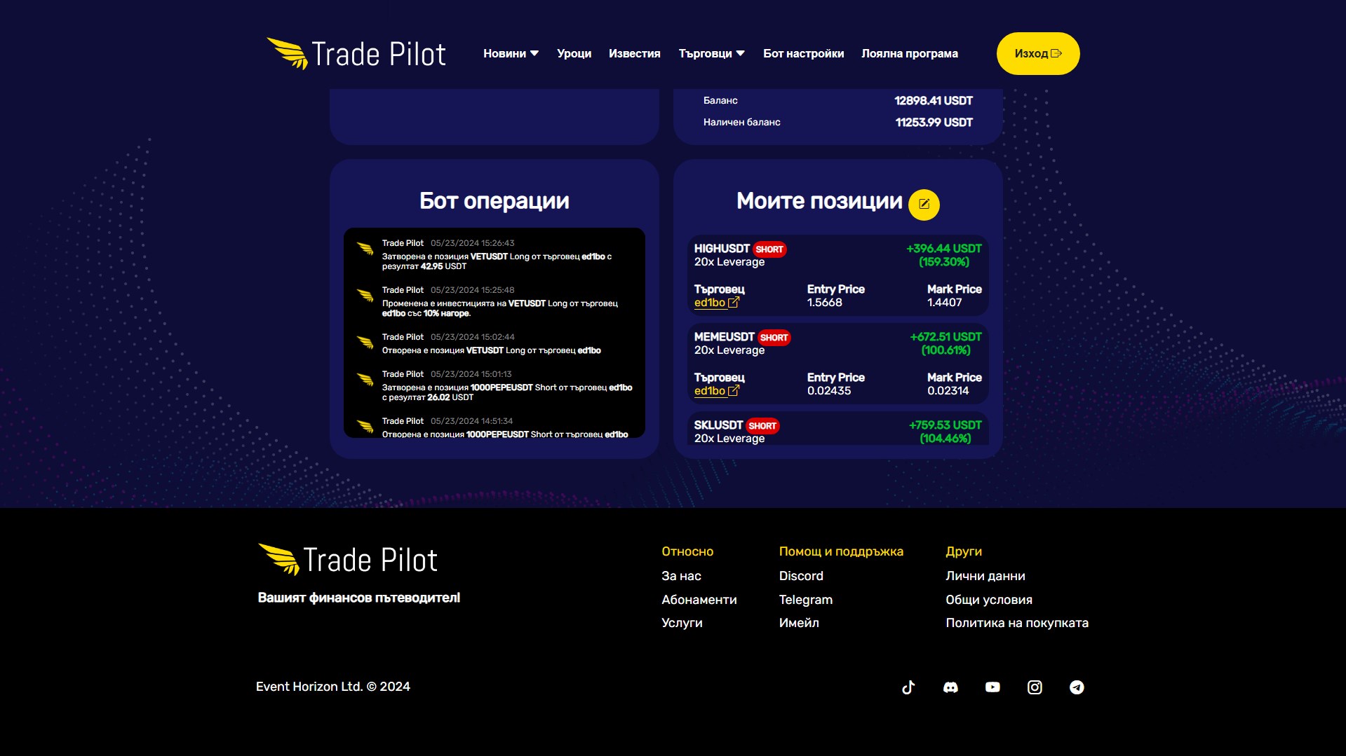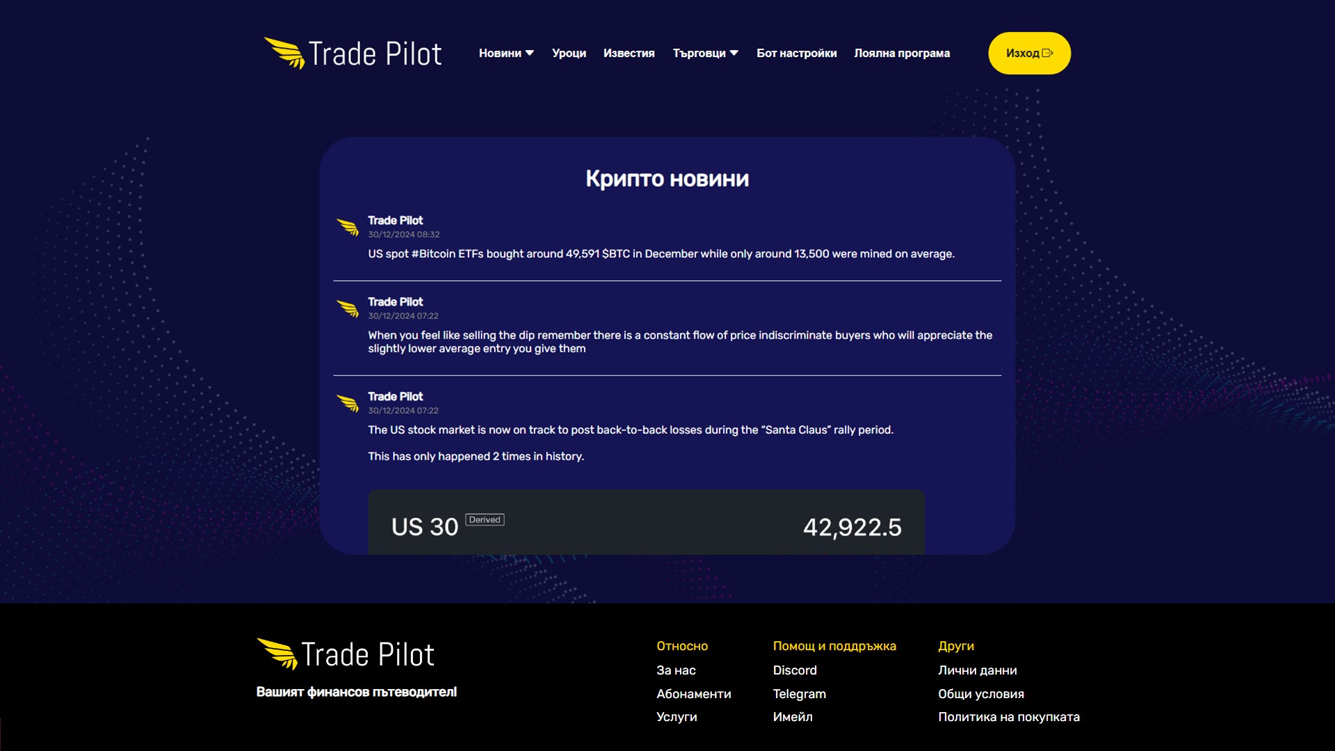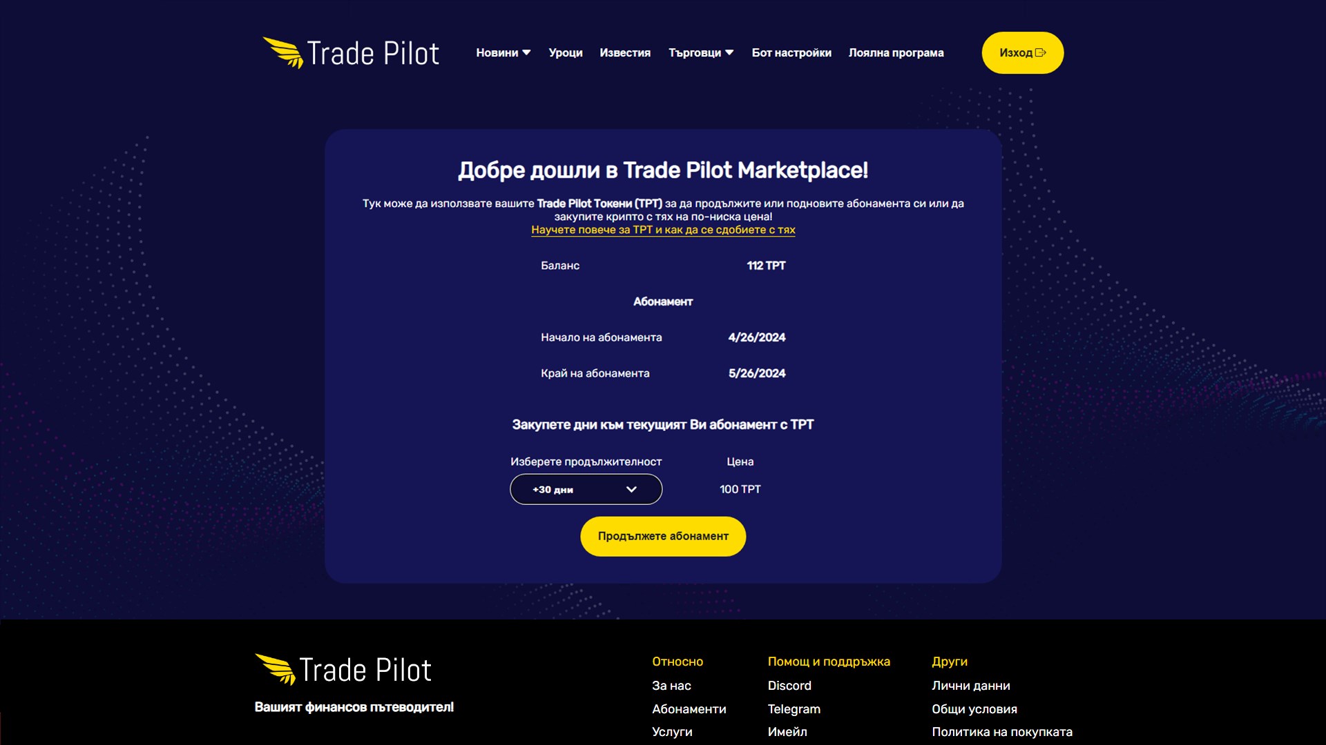 Присъединете се към нашата група още сега и ще бъдем на ваша страна, готови да ви помогнем по всяко време. Търгувайте с увереност, търгувайте с Trade Pilot!