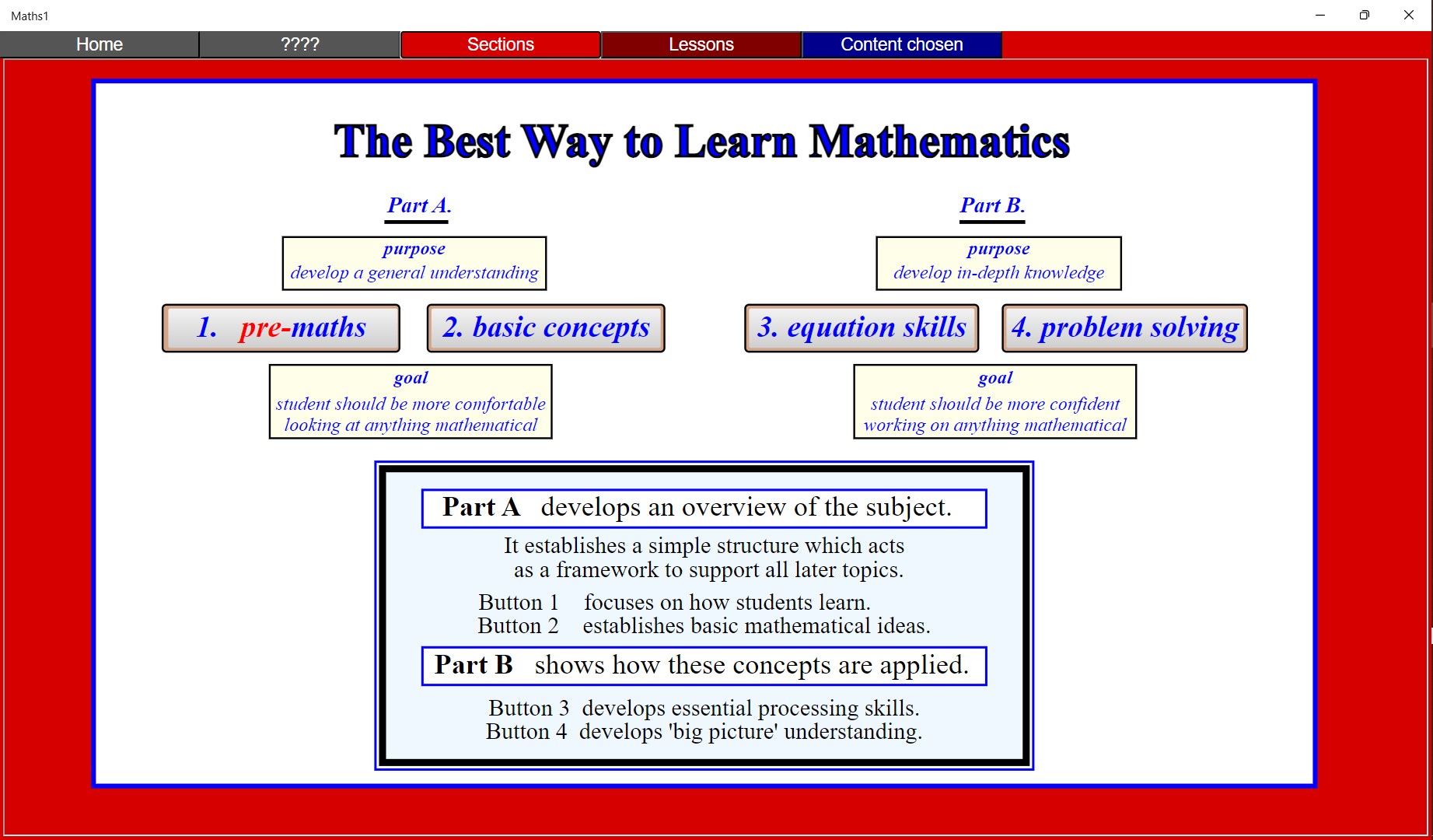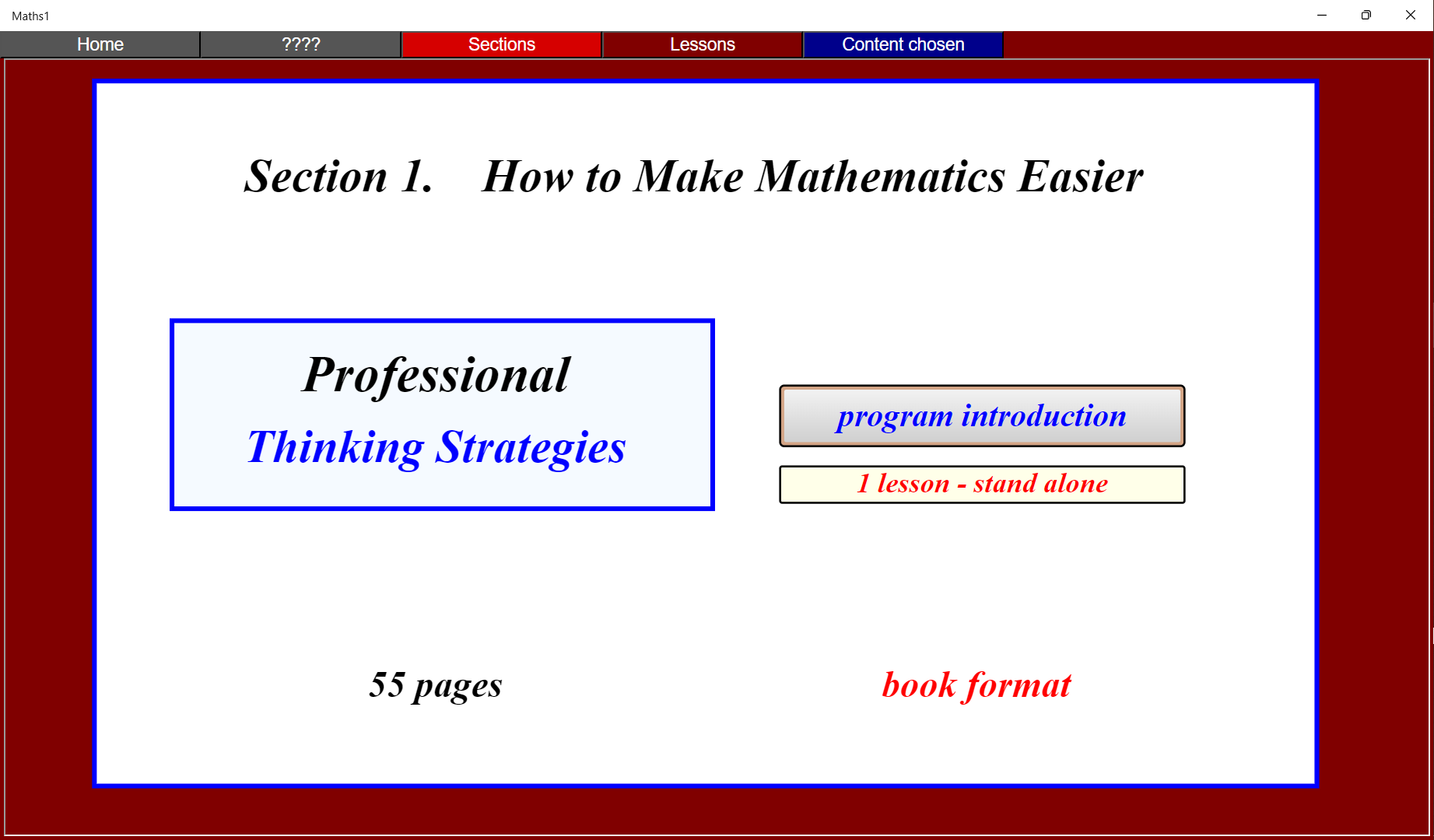 This is a unique style of e-book for use on a computer. Its aim is to improve mathematical progress.