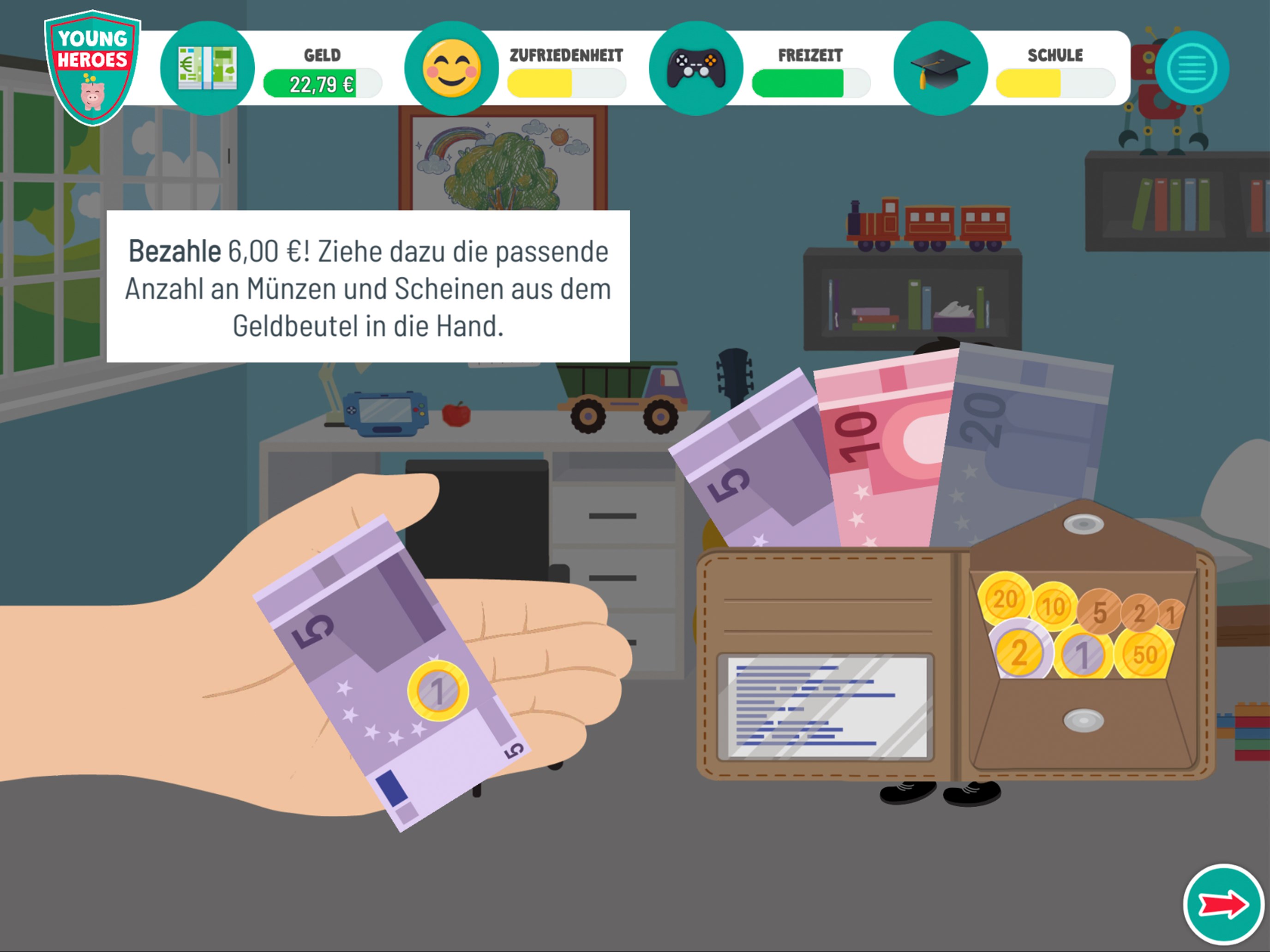 Nachhaltiges Finanzwissen für Kinder zum Umgang mit Bargeld, Taschengeld sowie Tipps zum Sparen – lebensnah und handlungsorientiert mit unserer digitalen Spiele-App YoungHeroes.