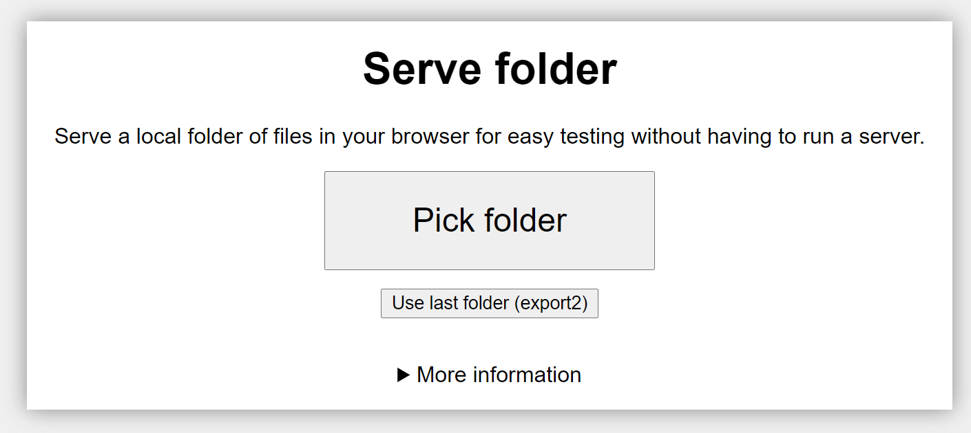 Serve a local folder of files in your browser for easy testing without having to run a server.