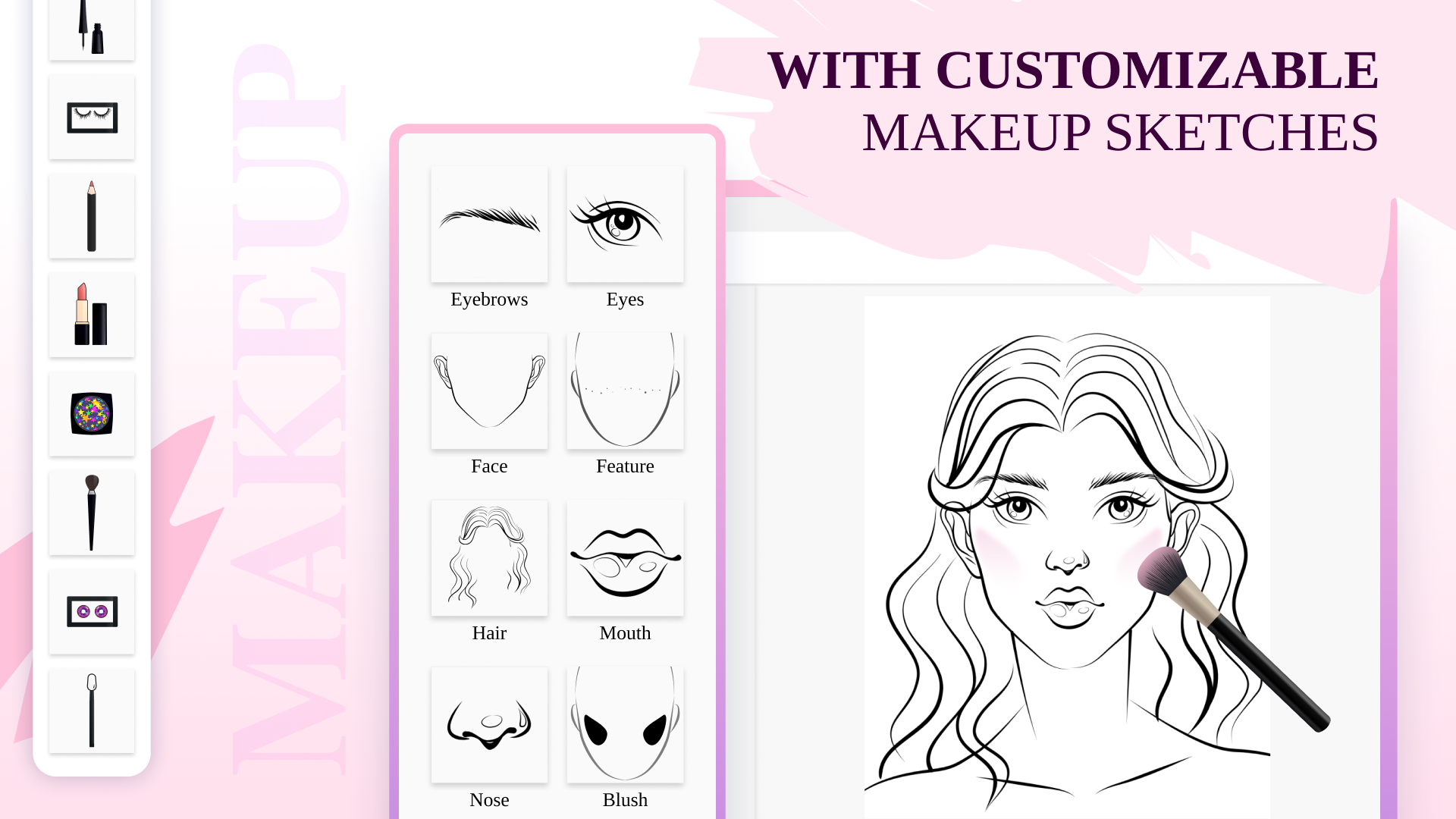 Face charts are used by makeup artists to come up with a new makeup look or test how different products combine with each other. Our app can be used by both amateurs and professionals. You can experiment with makeup or create your next look for an event.