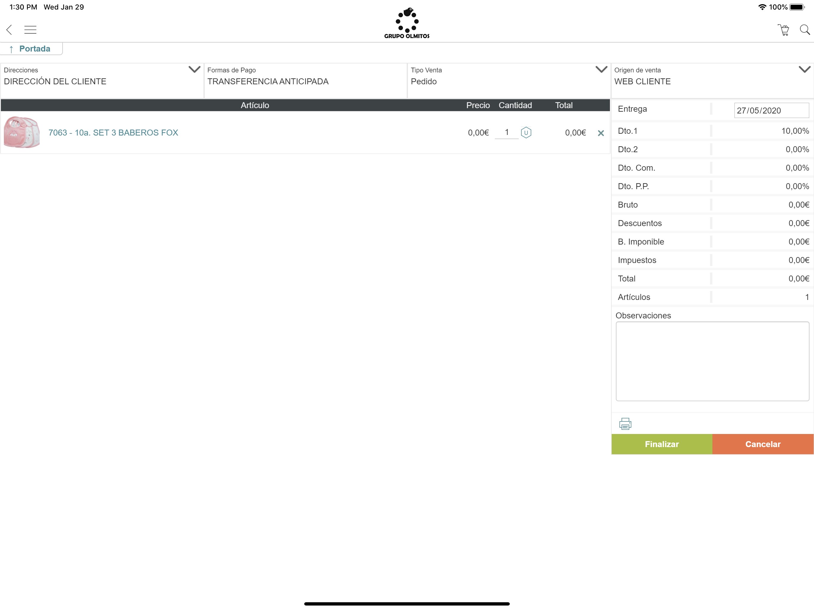 Olmitos B2B es la herramienta definitiva para realizar y planificar tus pedidos de forma fácil y rápida desde cualquier lugar, estés donde estés. Cuando realices los pedidos se insertarán directamente en nuestro ERP, por lo que esto disminuirá el tiempo dedicado a las tareas administrativas.