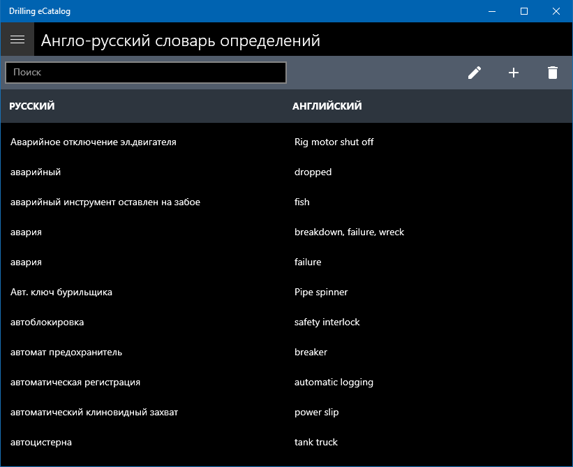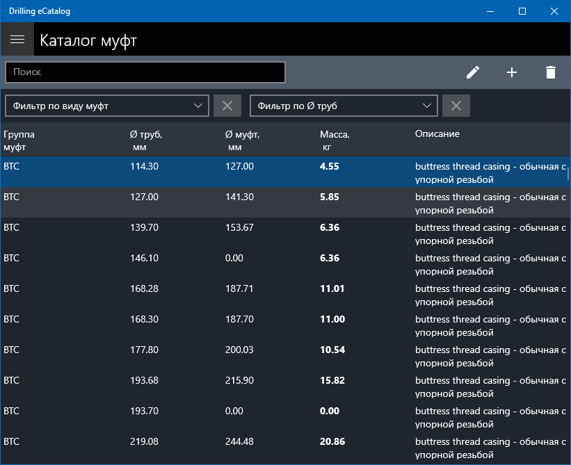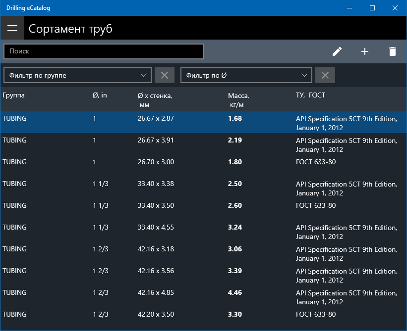 Types / groups of the rock cutting toolAPI drill bit codeCode interpretation of drill bit by APIAssortment of drilling, casing and tubingTypes of couplings and threaded connectionsCoupling characteristicsClasses and strength groups of steelCharacteristics of chemical reagents, substances, materials and oil-well cement for drilling and fastening oil and gas wellsHandbook of technological equipment for fastening oil and gas wellsThe list of the main types of directional drilling servicesDirectory of transport and special equipment used in the construction of oil and gas wellsRussian-English Dictionary of Drilling TermsCategory of soil rocks