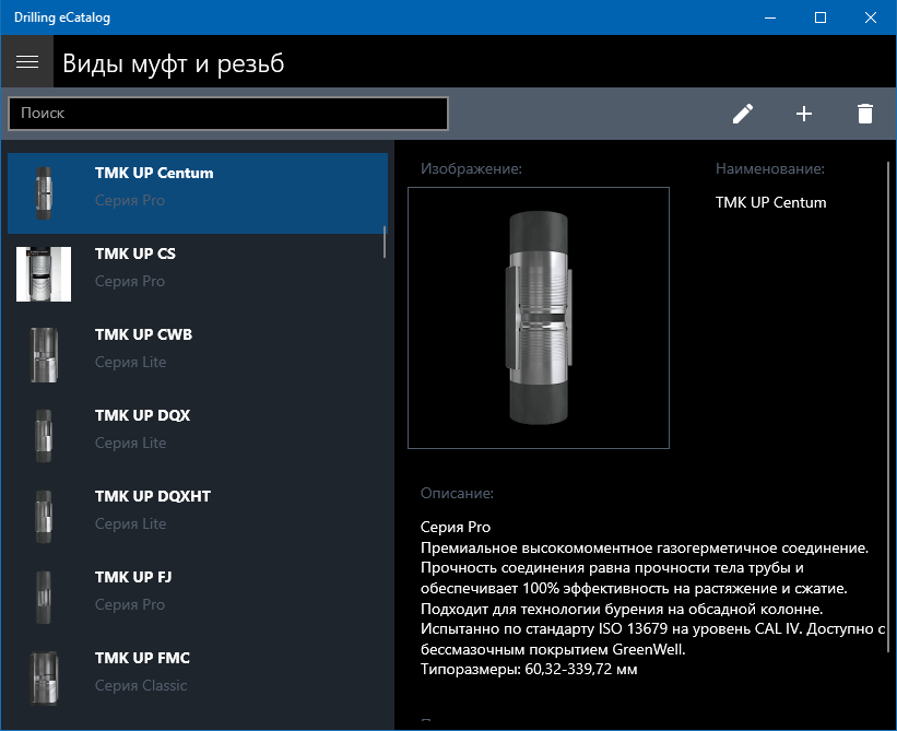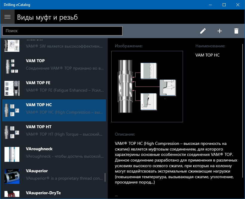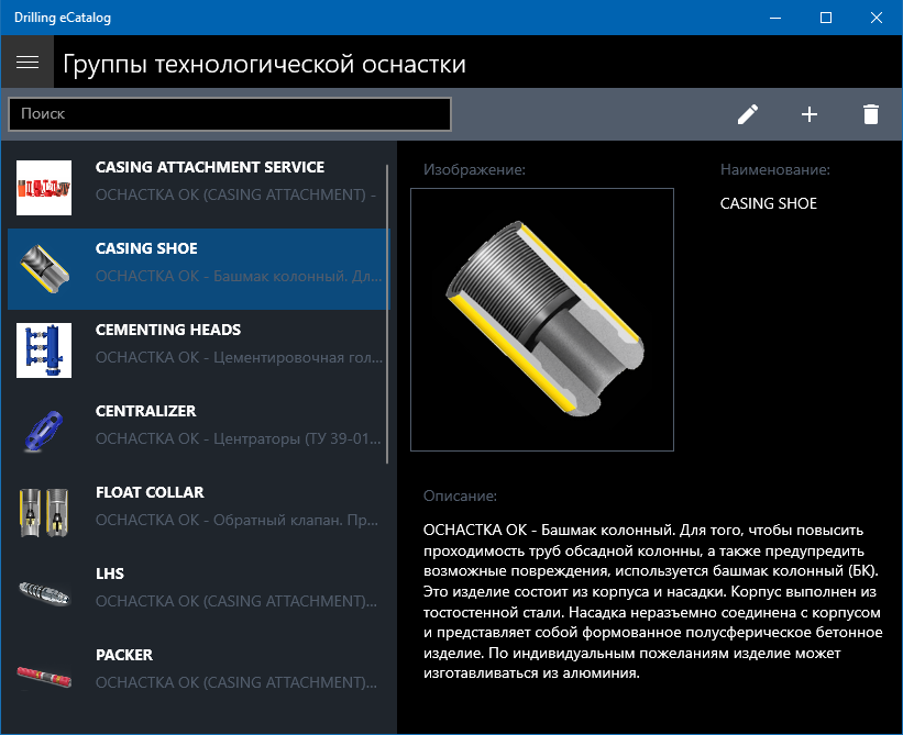 Catalog of materials and equipment for drilling and fixing oil and gas wells.