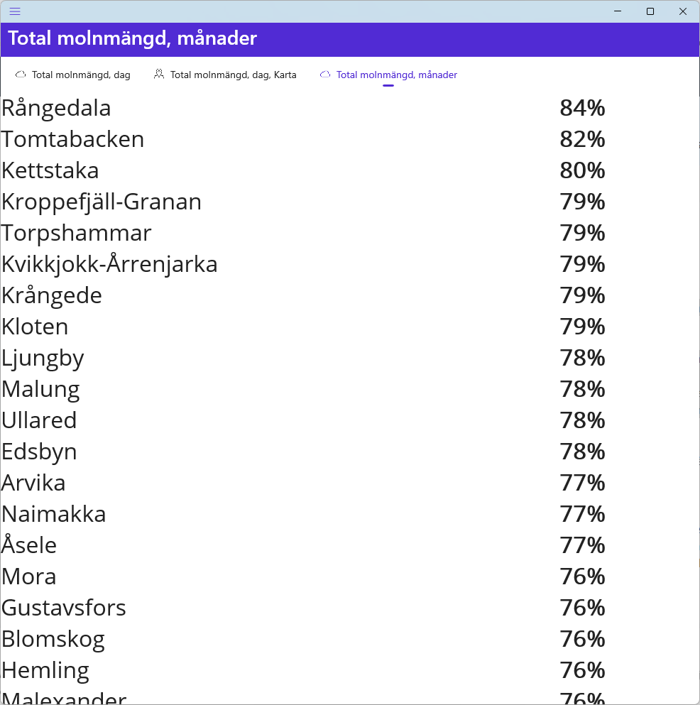 Enligt internationell praxis mäts molnmängden på himlen i åttondelar eller numera även i procent.