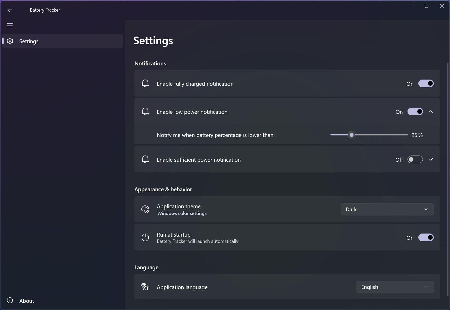 Track battery percentageShow power notifications