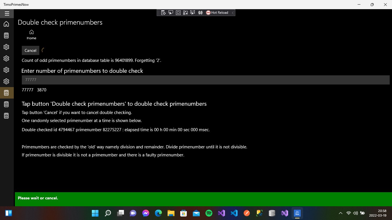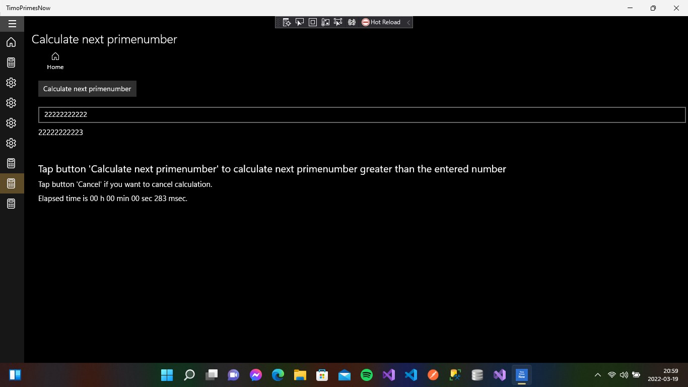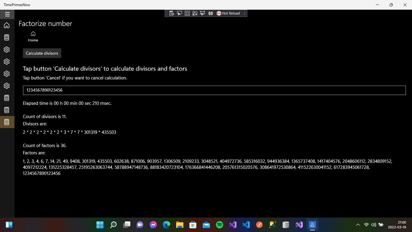 Calculate primenumbersEnter an odd number and calculate next greater primenumberDouble check primenumbersFactorize number.