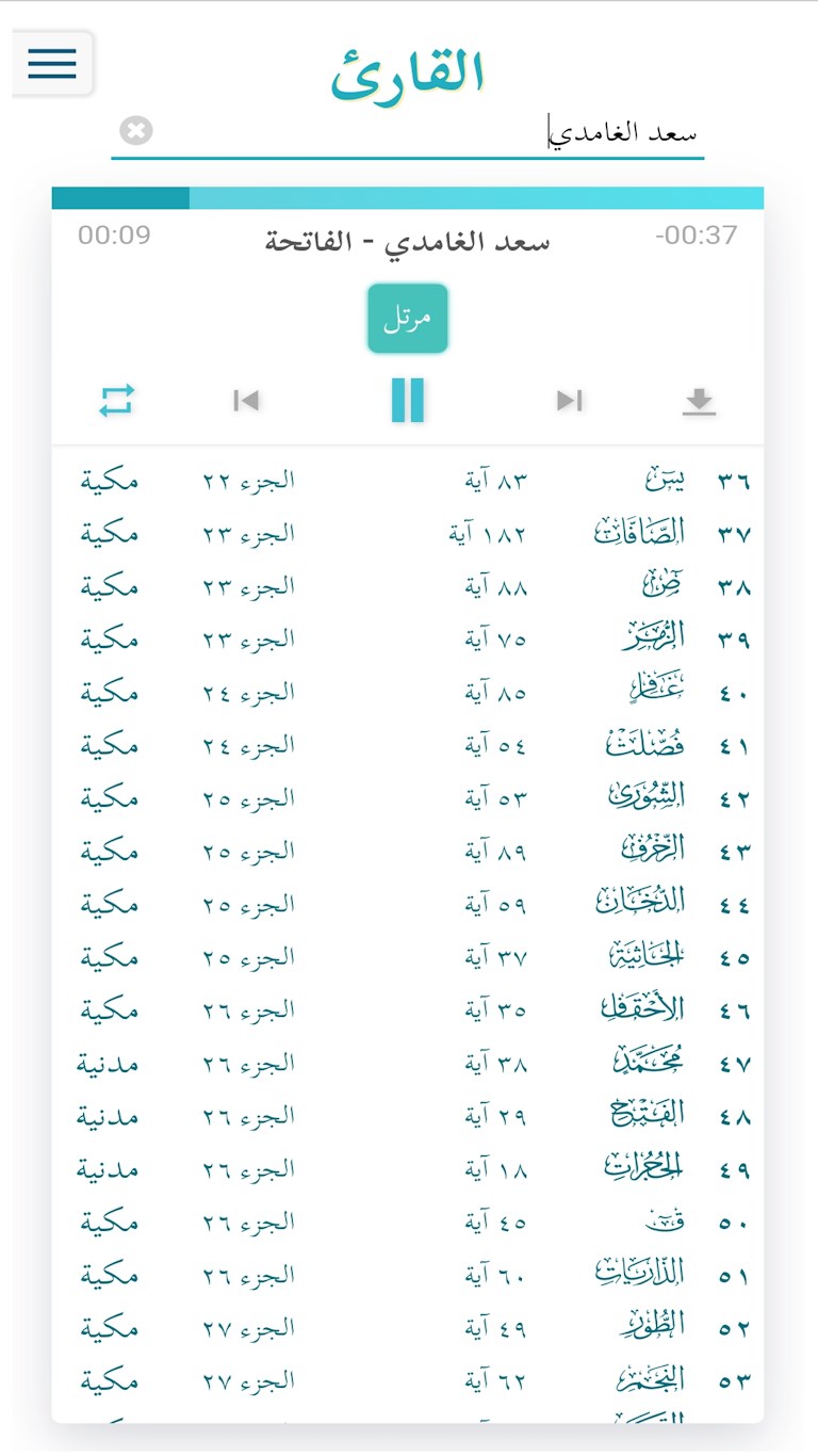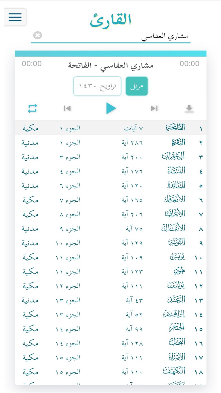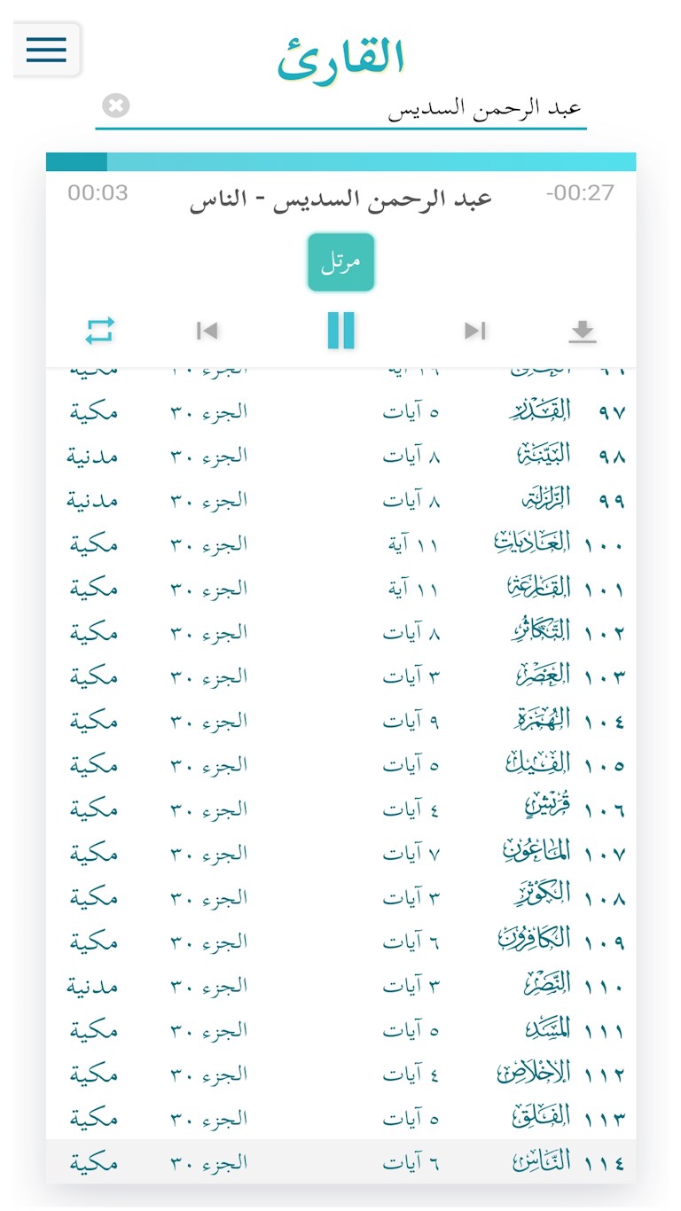 Complete Quranic Text: Access to the full text of the Quran, organized by surahs (chapters) and ayahs (verses).Audio Playback: Listen to recitations of each surah directly on the site.Surah Information: Details about each surah, including its number of ayahs, juz\' (section), and classification as Meccan or Medinan.