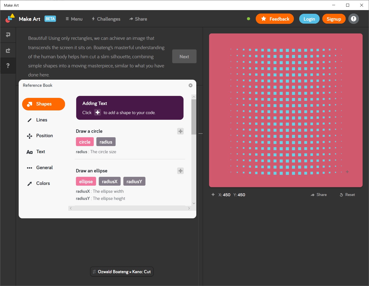 Kano World is our creative community. Open any creation, look at the code, learn how it works, and tweak it to make something new.