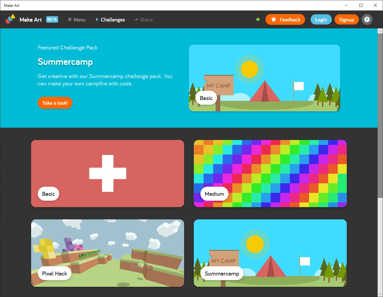 Write code in seconds. Start simple, and step-by-step make beautiful pictures and playful games.