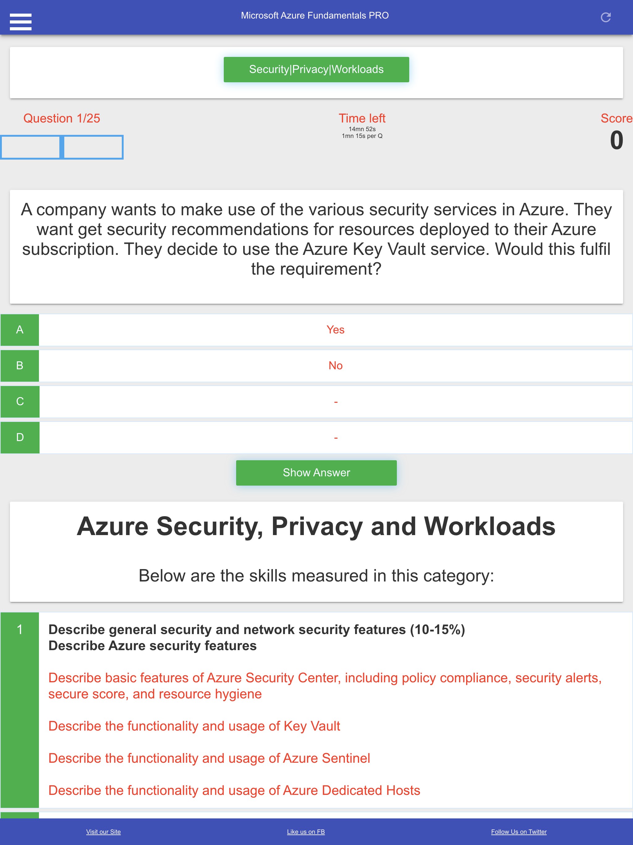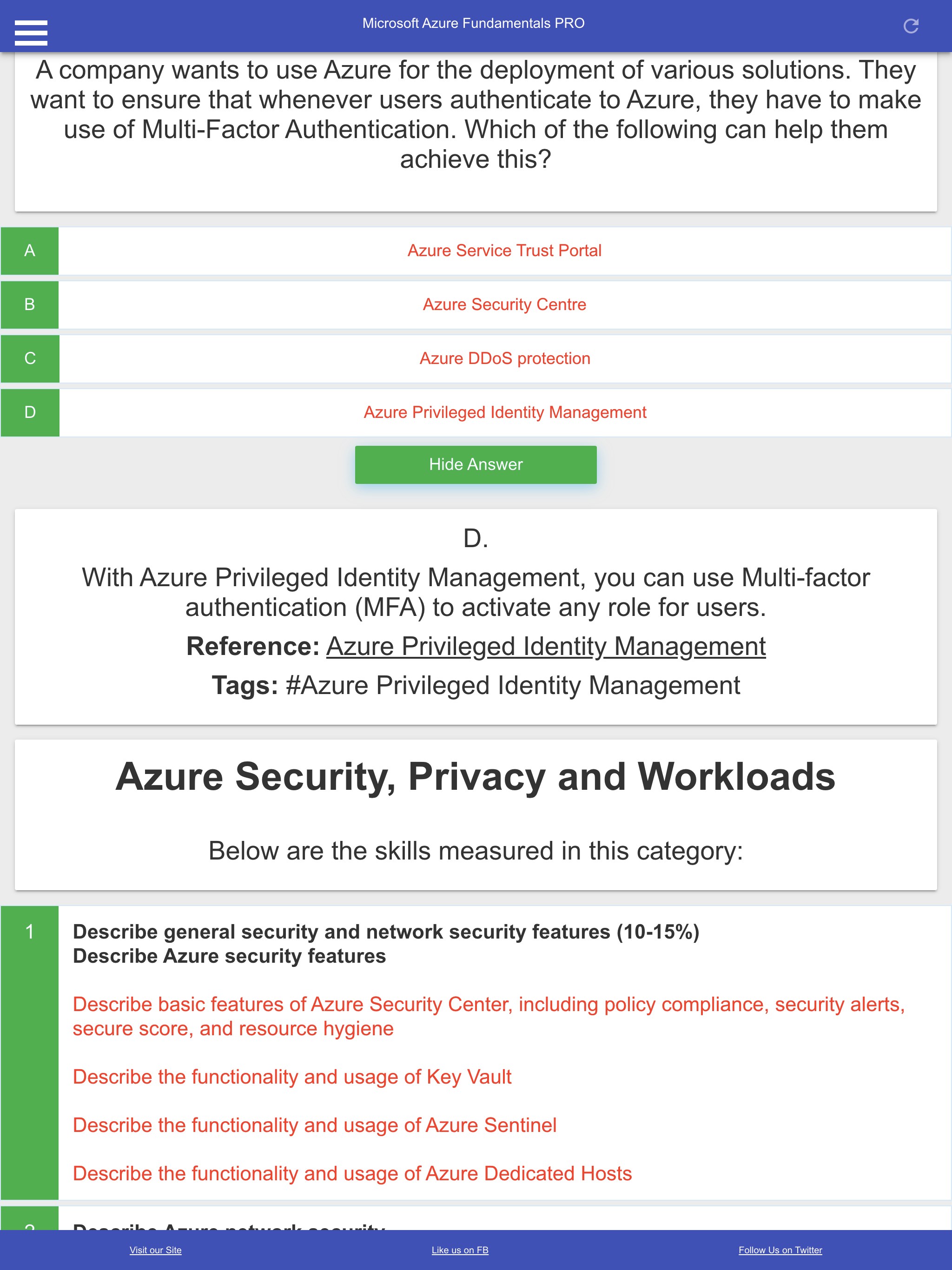 Note and disclaimer: We are not affiliated with Microsoft. The questions are put together based on the certification study guide and materials available online. The questions in this app should help you pass the exam but it is not guaranteed. We are not responsible for any exam you did not pass.