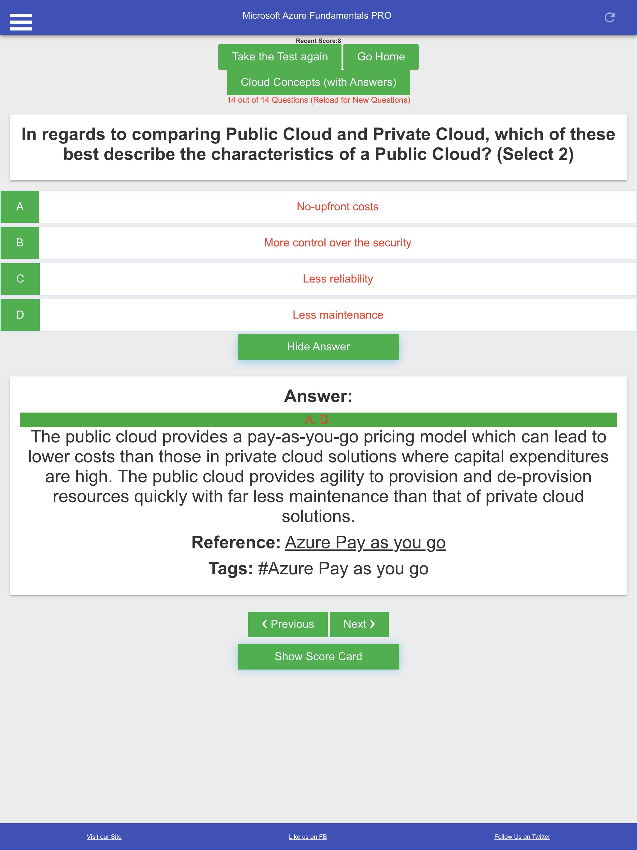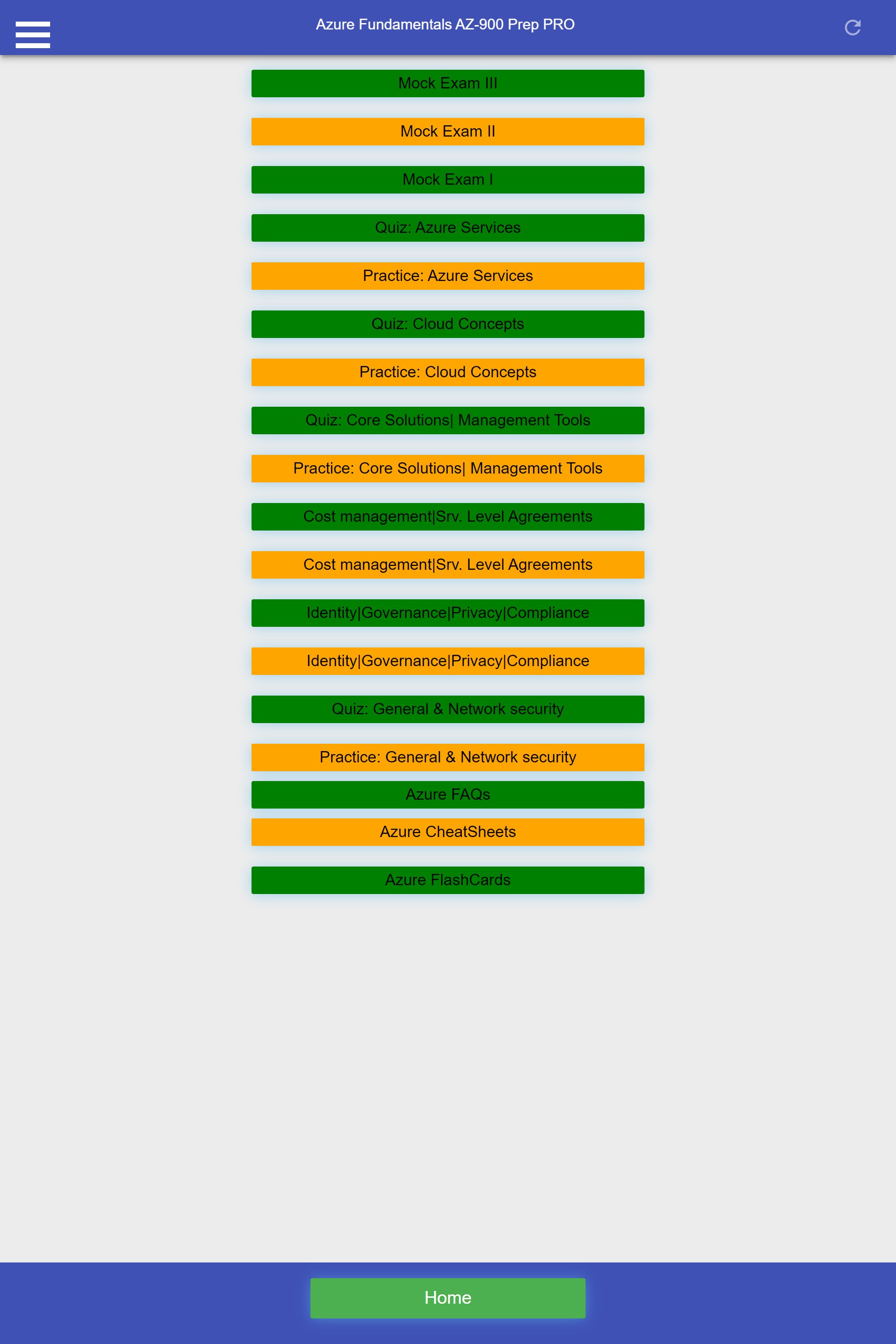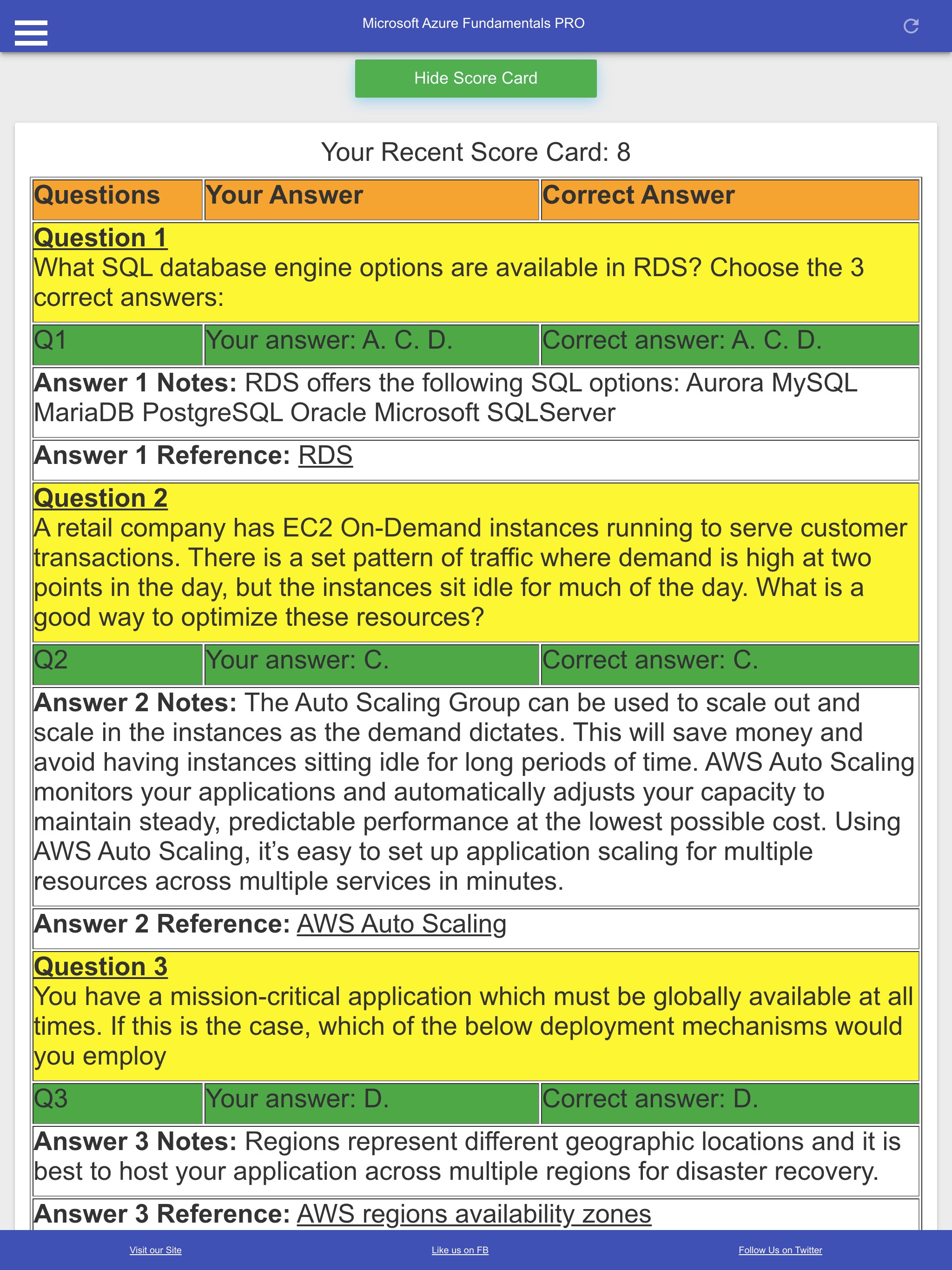 Azure AZ900 QuizzesAzure Fundamentals Mock ExamsAzure FAQsAzure Cheat SheetsAzure FlashcardsScore CardCountdown timerFrequently Asked QuestionsAZ 900 Exam QuestionsAzure Fundamentals TestsTutorialsTraining VideosPractice Exam QuizPractice Exam Questions and AnswersDetailed AZ-900 Questions and Answers References for all answersCheat SheetsAZ-900Azure Fundamentals Tests PrepMicrosoft