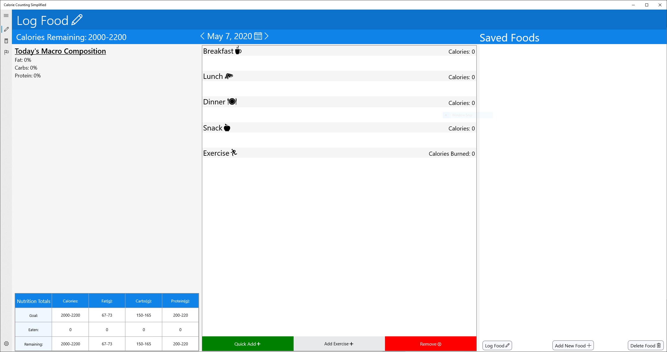 Calorie Counting Simplified is a free calorie counting app designed with simplicity in mind. Set a nutrition goal and track the amount of calories and macronutrients that you eat each day to stay on top of it! Whether you're aiming to lose weight, gain weight, or just be mindful of what you're eating, Calorie Counting Simplified aims to let you set your nutrition goals without the meaningless fluff present in other nutrition apps. The best part? It's free!
