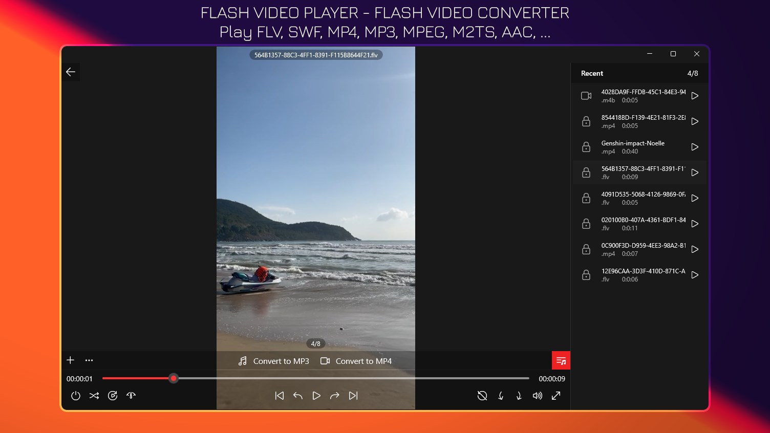 Play FLVPlay flash video, audioConvert FLV, SWF to MP4, MP3Play SWF