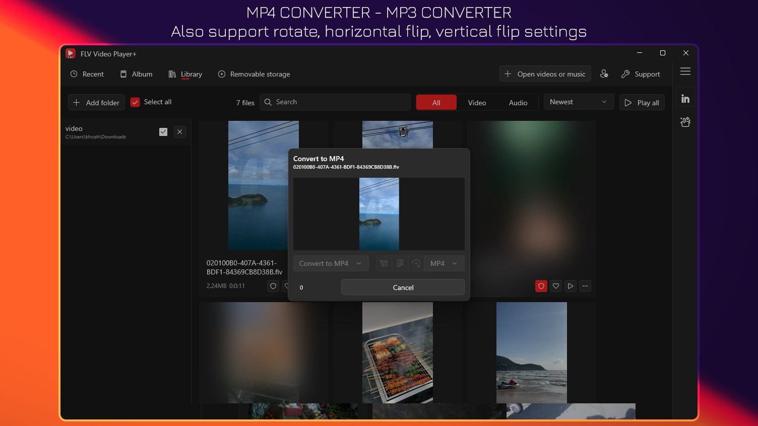 Convert FLV, SWF to MP4, MP3.