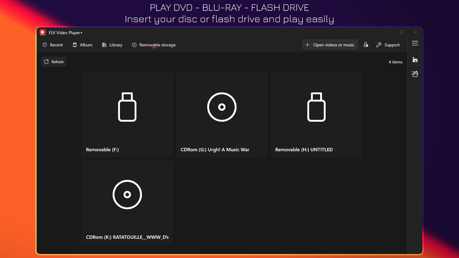 + Play FLV videos from DVD discs.
