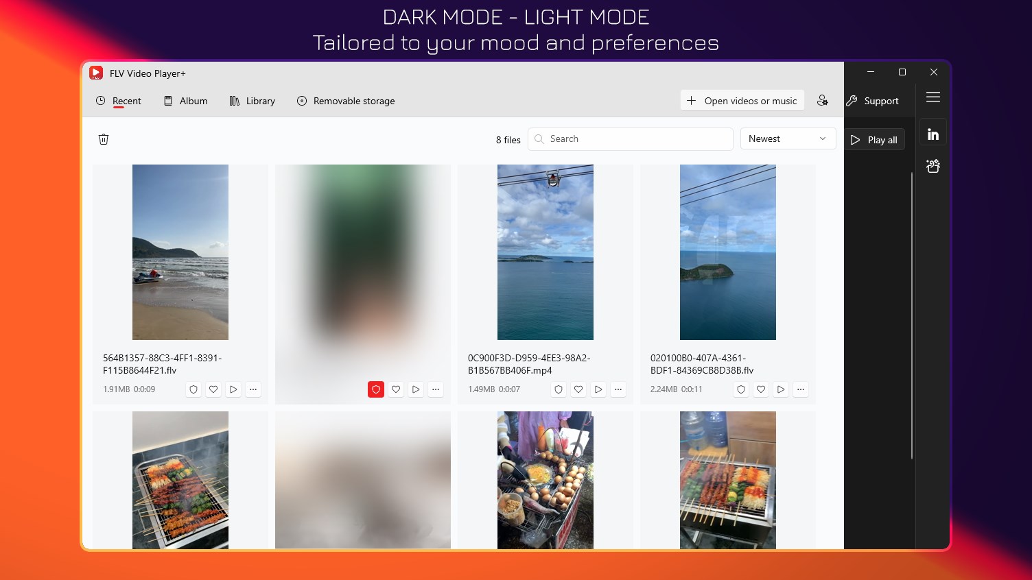 - Blurring thumbnails of videos and hiding media titles.