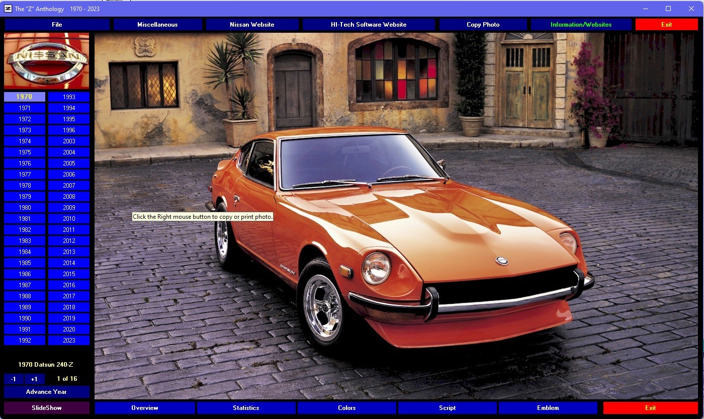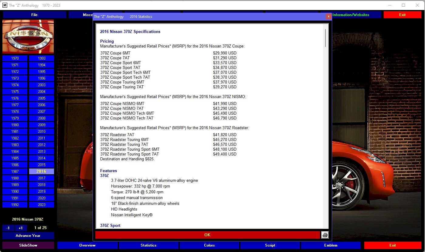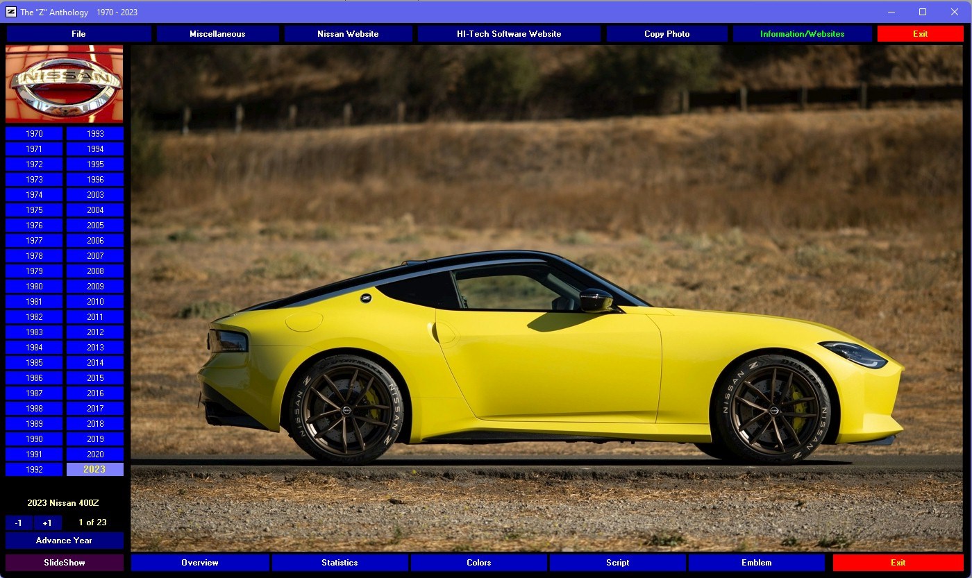 The Nissan Z/Zx Anthology 1970 – 2023 is a digital multimedia scrapbook of the world of the legendary "Z". This DVD-ROM contains nearly 800 photos, hundreds of graphics and much more to guide your tour. Browse the statistics, the colors and the models that made the Z a favorite of millions of people all over the world. They're all here from Datsun to Nissan, the 240s, 260s, 280s, 300s, 350s, 370s and the latest 400Z generation. A must have for any "Z" owner or enthusiast!