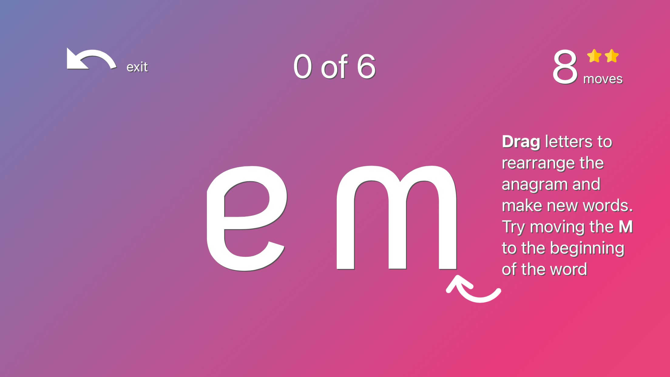 Named one of the Best Word Games by of 2021 by several mobile magazines, Anagraphs is an educational word puzzle designed to build linguistic and spatial skills. An anagraph is an extension of an anagram in which letters can be rotated. In a typical anagram, the letters of a word are rearranged to make another, such as raw and war. Using the specially designed Anagraph game font, the r and m characters can be rotated to shift from raw to ram, jam, and jaw. The game begins with simple puzzles but quickly increases in difficulty, requiring you to optimize efficiency in order to progress. There’s also “Open Play” mode, for the ultimate language-puzzle meditative flow.