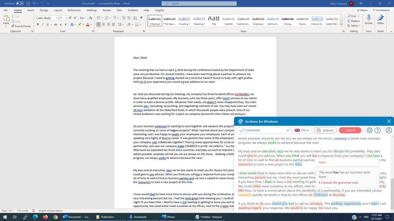 Step 4: Use Spell checker and Grammar checker by Scribens