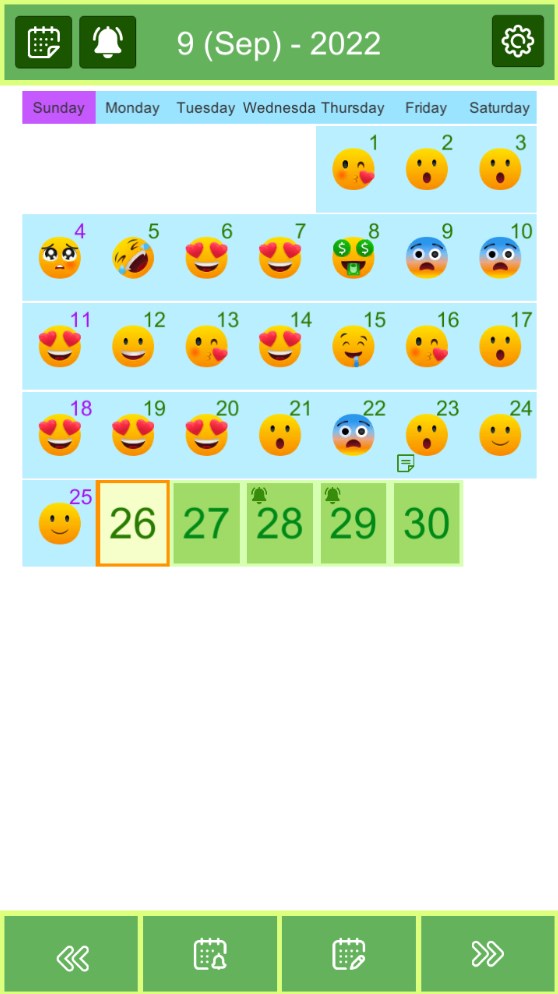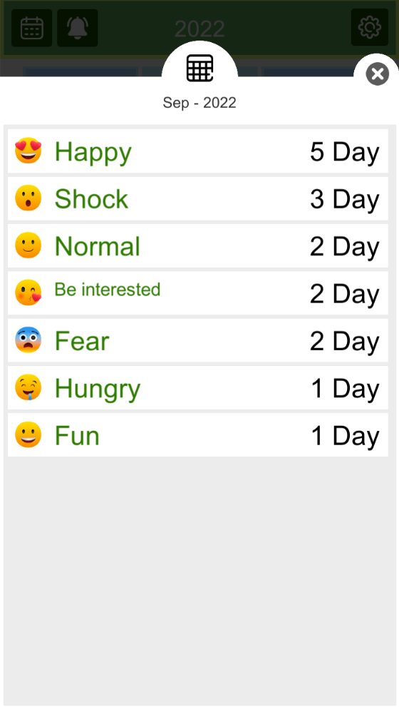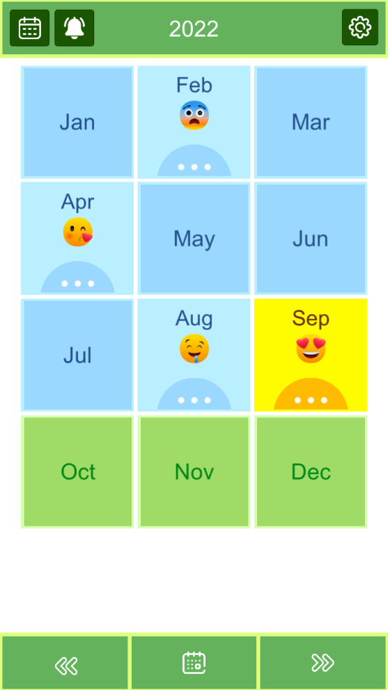 This is a calendar application that records your emotions day by day and you can statistic how a month or a year has passed, how you have lived with sad, happy, lonely emoticons.