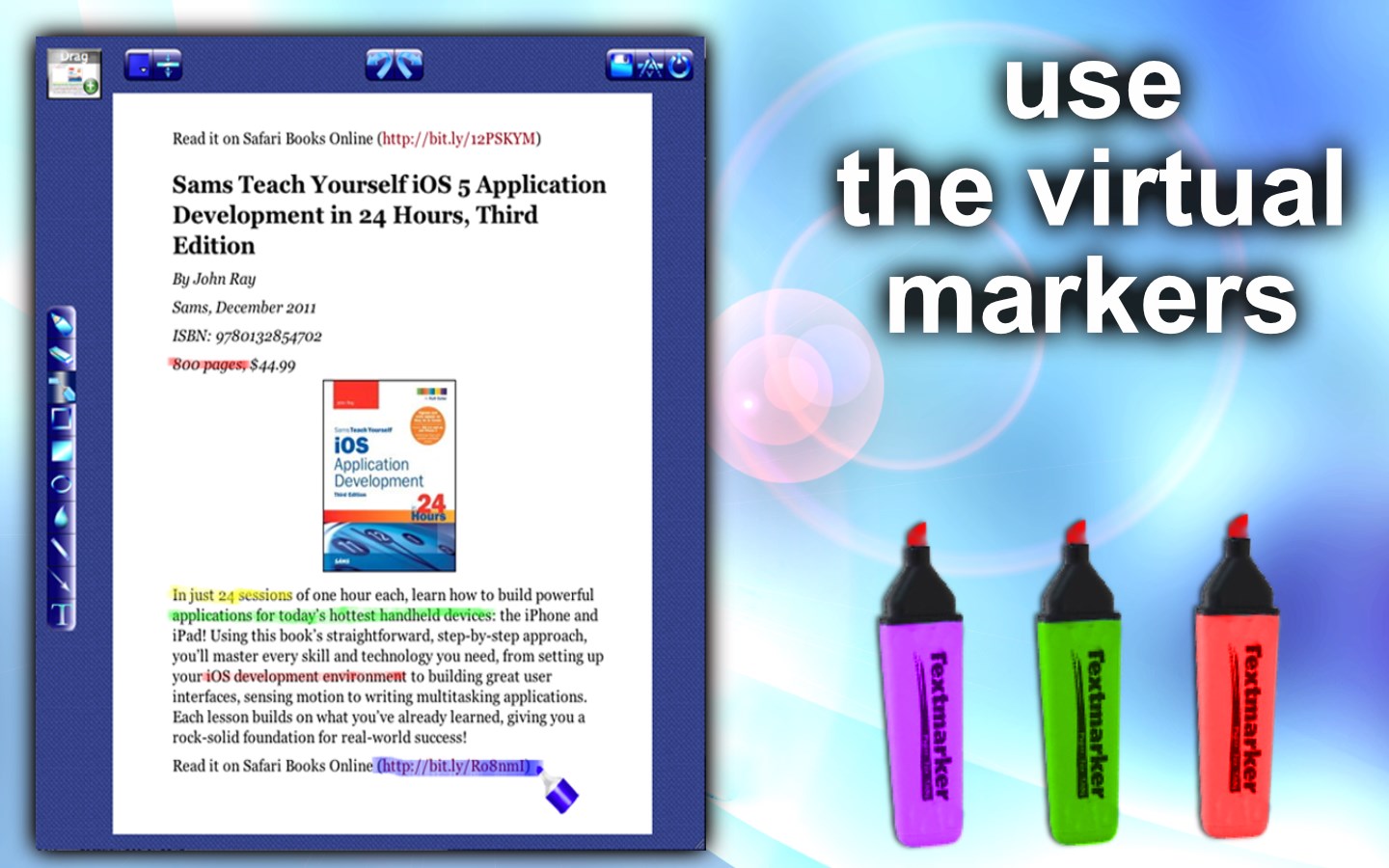 - Highlighter for highlighting important parts of text;