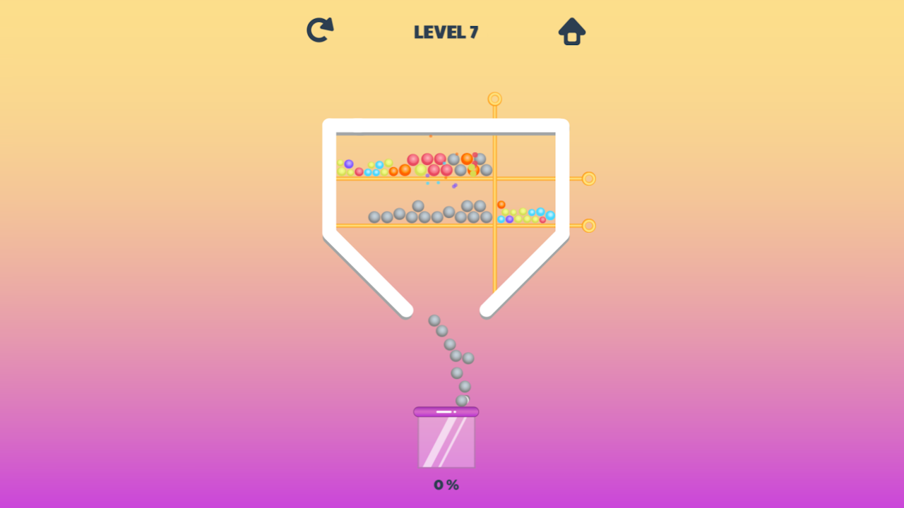 Embark on a strategic journey in Puzzle Adventure Ball! Your goal is simple: guide colored balls to gray ones by pushing pins. As you collect gray balls, they transform and align in transparent flasks. Master each level with precision and foresight, overcoming challenges and unraveling pin movements. With engaging gameplay and many levels, it's a vibrant experience. Can you conquer each puzzle and direct the balls to their destination? Challenge yourself and enjoy the fun!