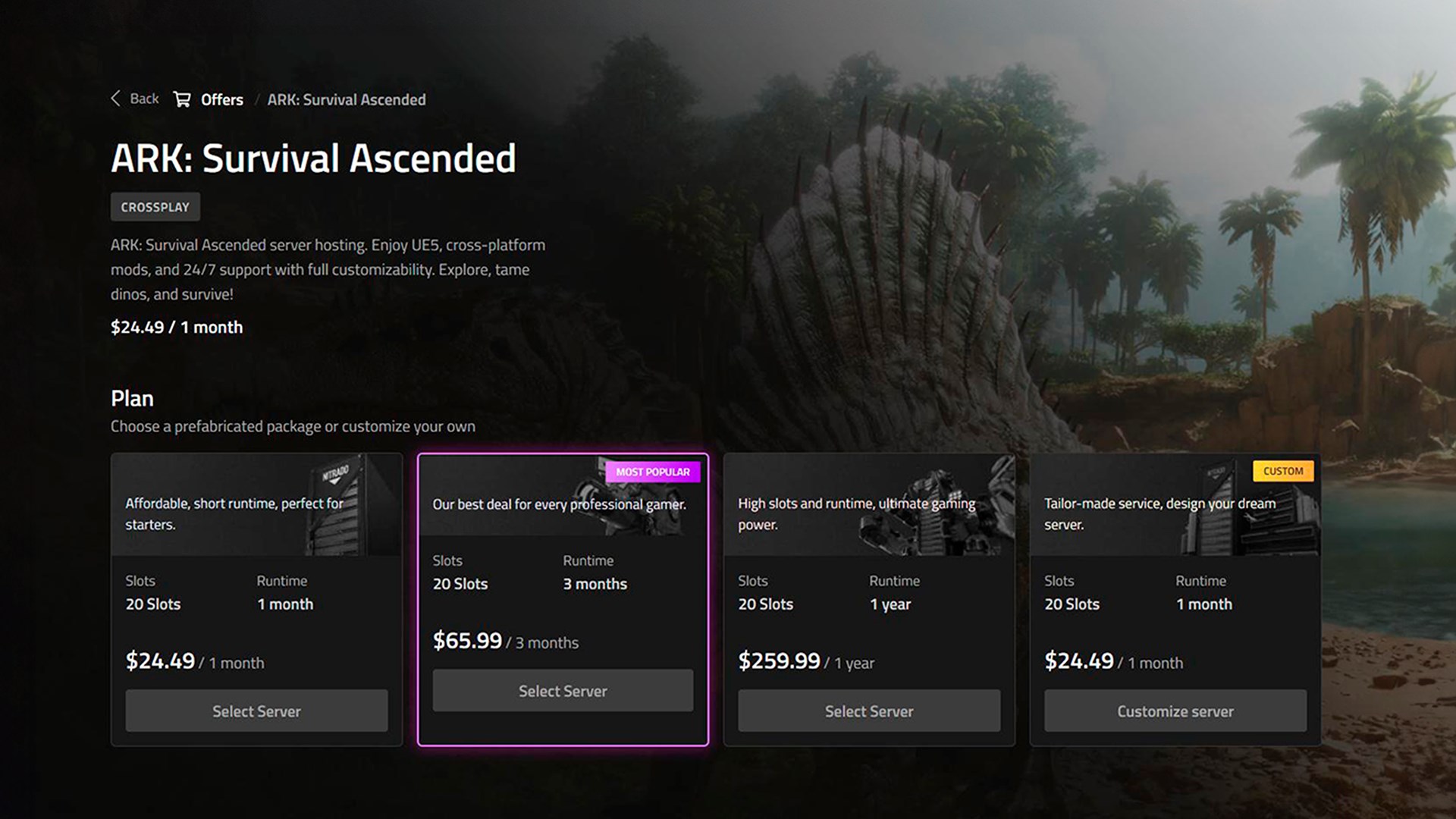 Nitrado is the leading provider of game servers with nearly 25 years of unmatched expertise. We deliver exclusive titles such as ARK: Survival Ascended, along with fan favorites like Minecraft. Choose any game in our large library and swap between them at any given time. Hosting a game server with Nitrado provides you with a streamlined web interface, allowing quick and easy access to everything.