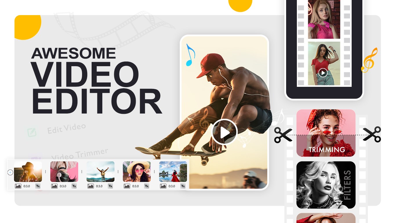 The app allows you to edit, merge, split, and trim your videos. With different editing features, you can enhance the beauty and quality of your videos. You can also mix audio or add background music and make your videos more unique.