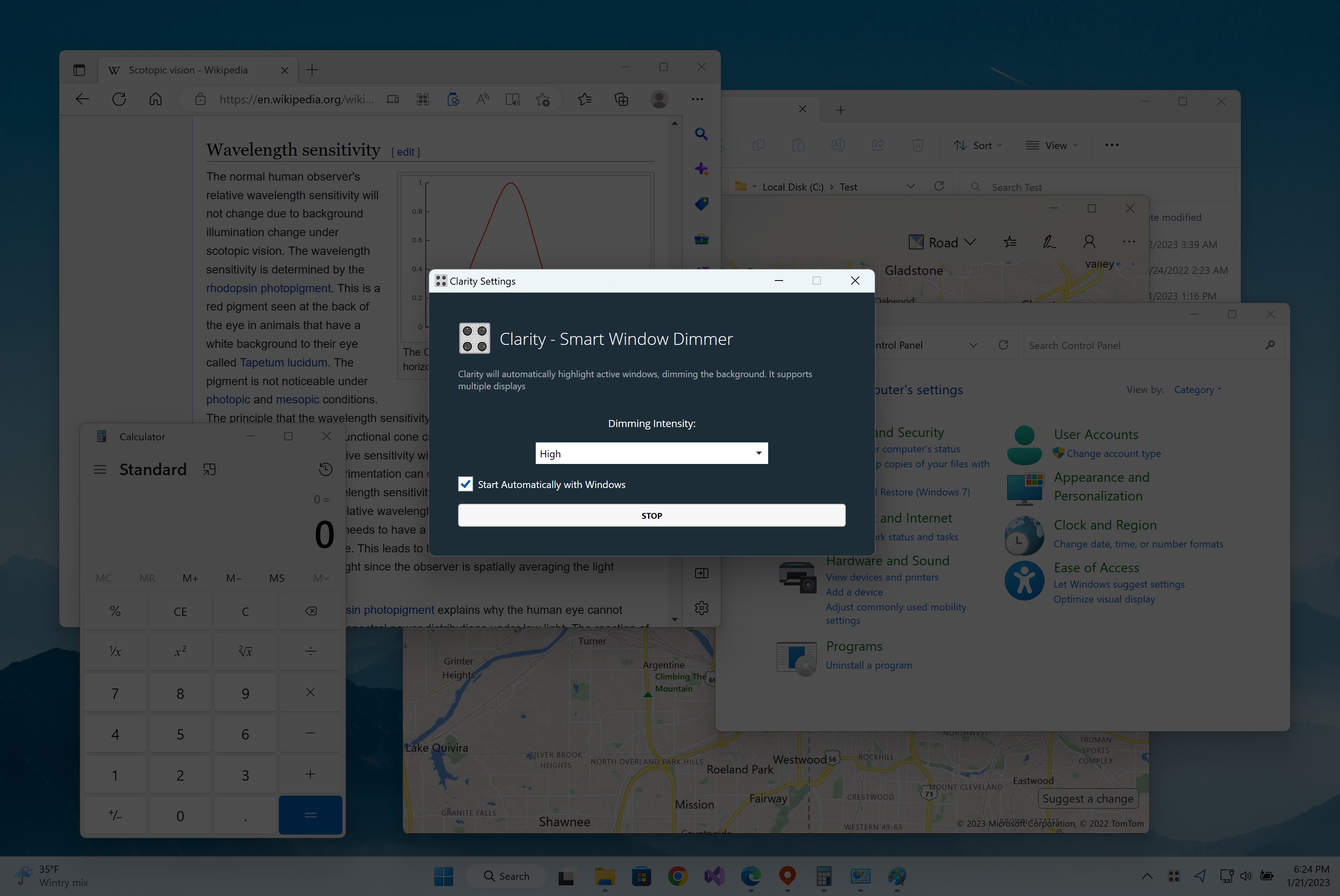 Stay focused and organized with Smart Window Dimmer, the ultimate solution for managing multiple windows across any display. Perfect for multitaskers, this app intelligently dims all inactive windows, allowing you to concentrate on your current task without distractions.