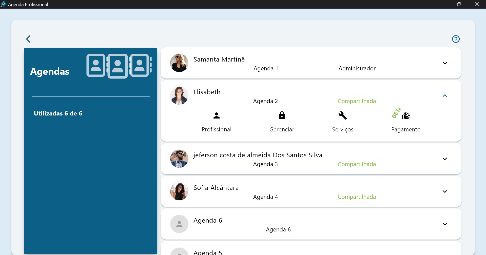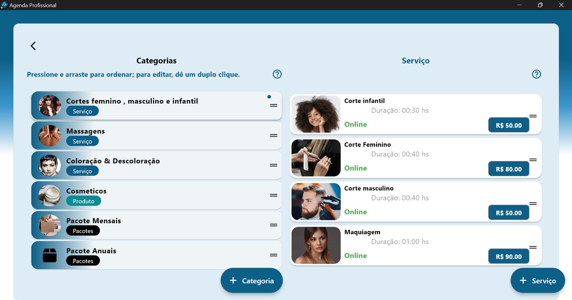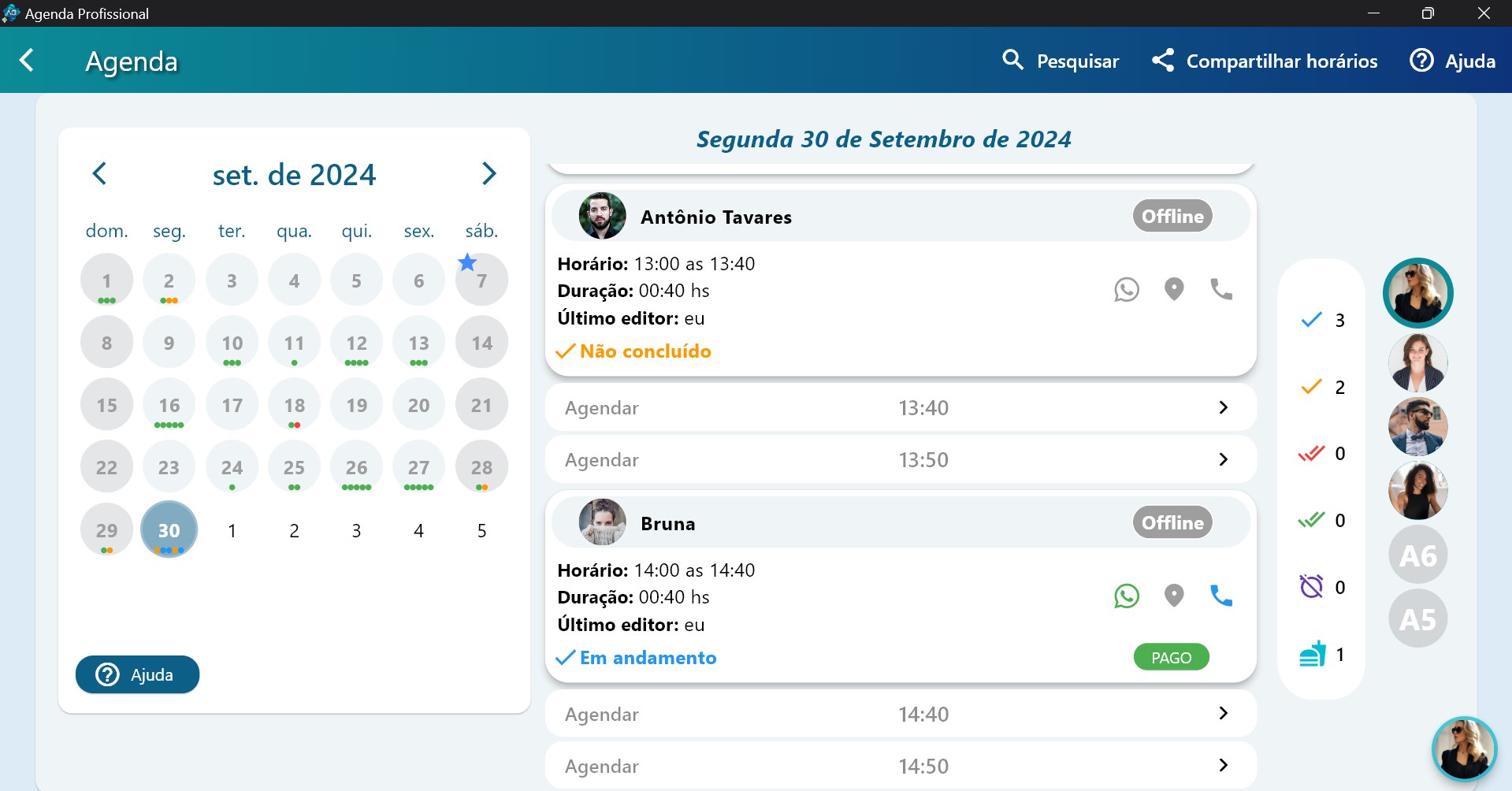Professional Agenda is an application that helps organize your appointments, clients, and finances, allowing your clients to also schedule their own appointments according to your availability.
