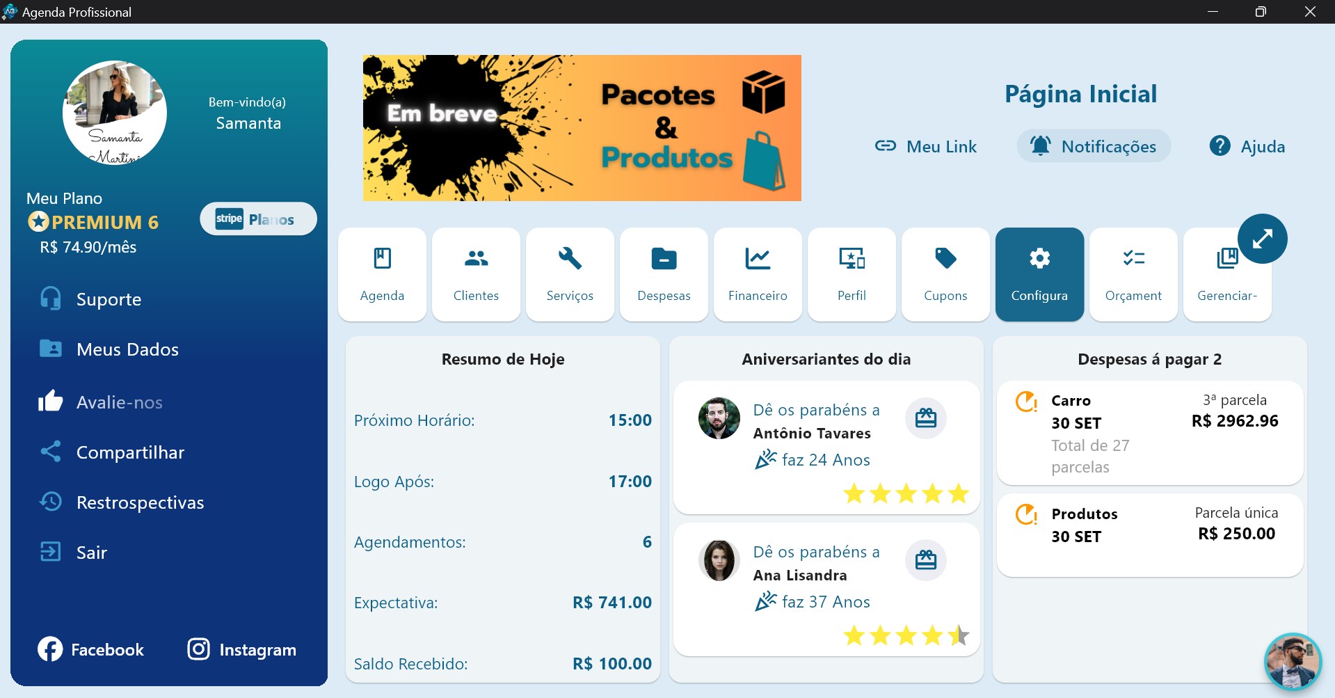 Online SchedulingExpense RegistrationClient registration with forms, reports, and anamnesis formsCoupon GeneratorService RegistrationBudget CreatorClient Wallet: manage your clients\' balances in your business, both for debtors and for clients with a positive balance.Website and app with your schedules and services for your clients to book appointments.Weekly notifications invite clients to schedule appointments; they also receive reminders so they don\'t forget their commitments.Birthday Reminder.Financial Control.