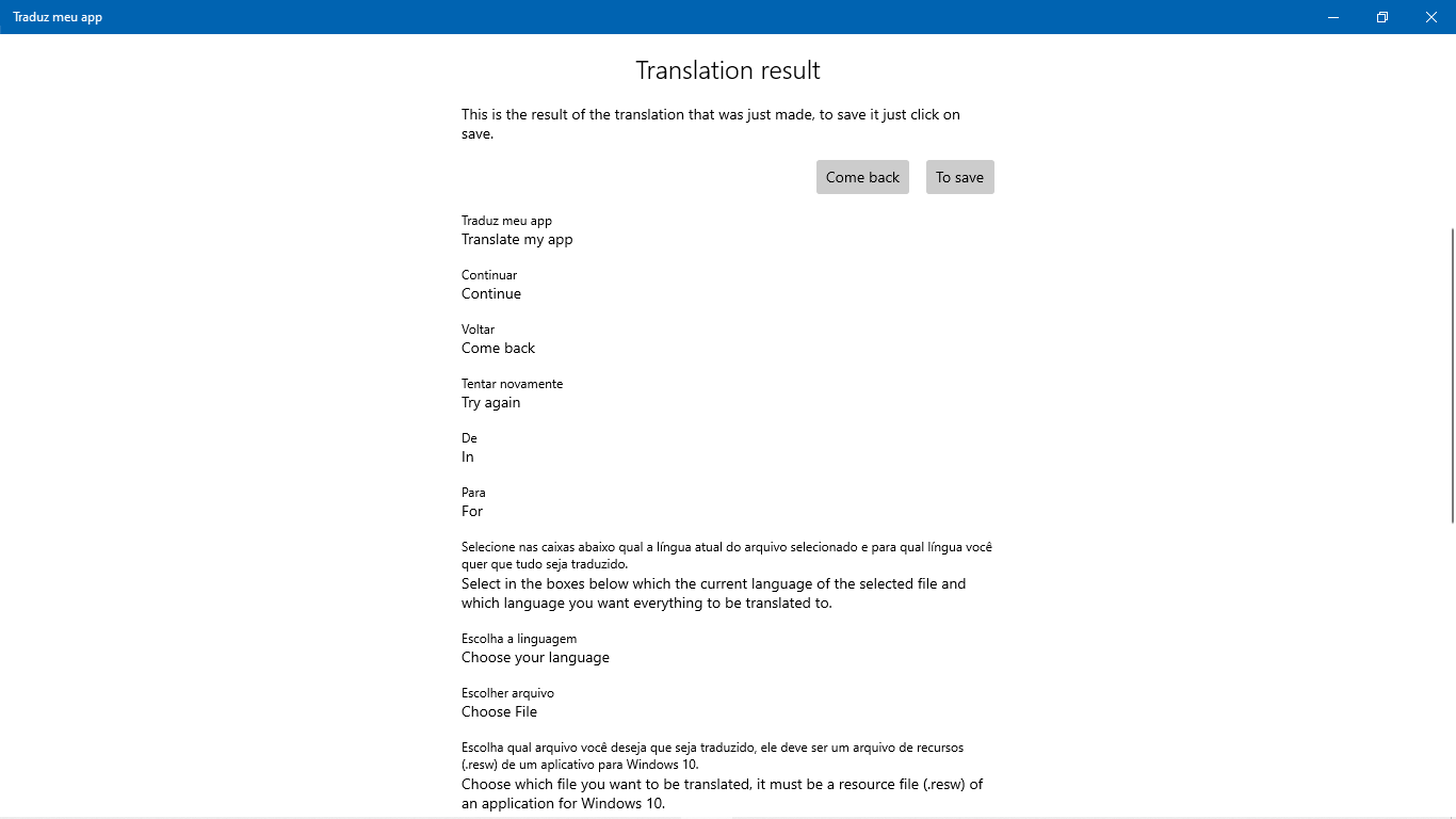 Designed by a developer for developers. Here you can translate your application's resource files quickly and easily. For now everything is free and supports only UWP applications, but everything will progress as the application gains users.