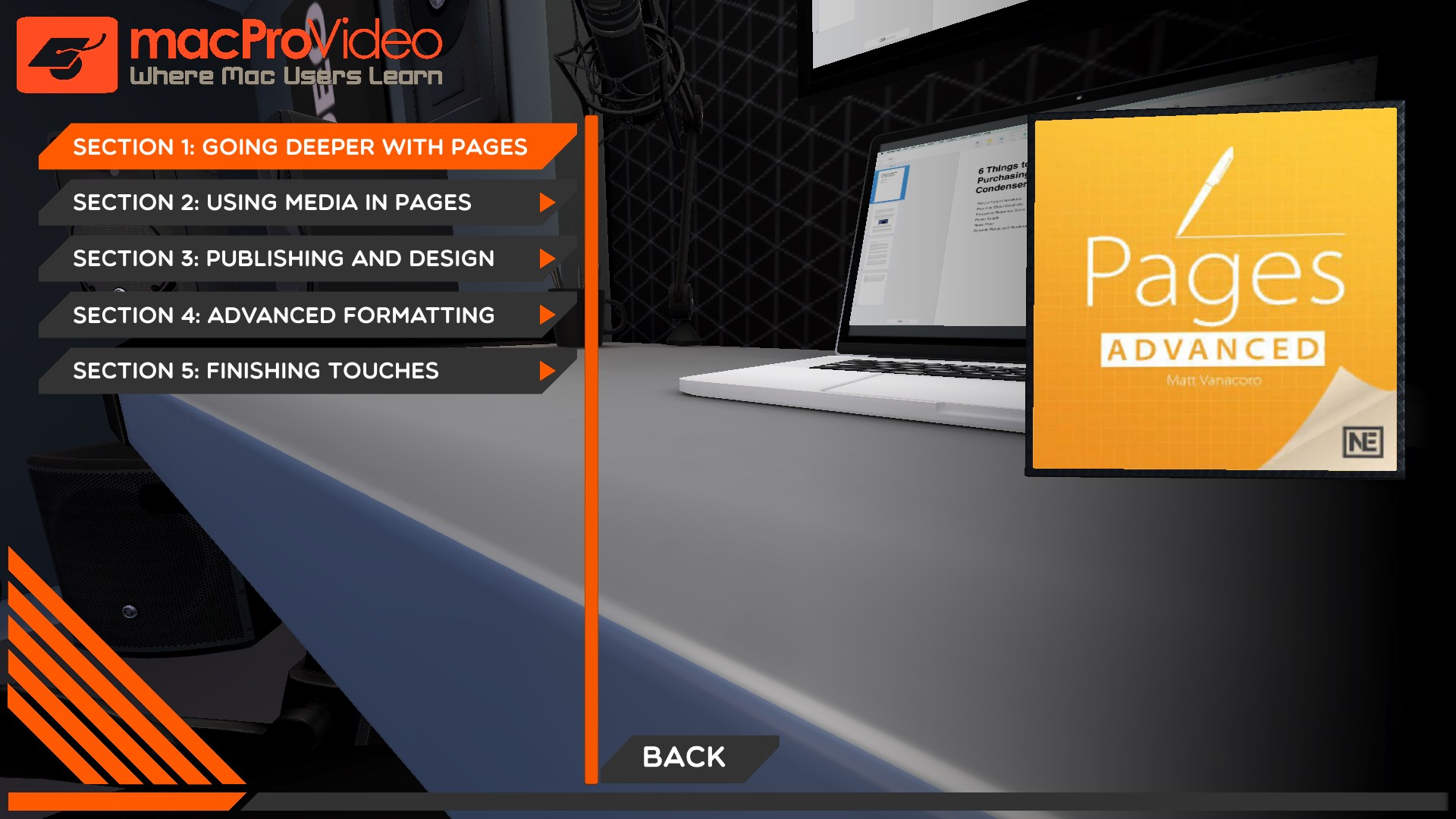 Featuring our industry specialist trainer, Matt Vanacoro !This course on Pages Advanced will show you everything you need to know!Including a fully interactive interface!With 20 videos, and 1 hour and 10 minutes of valuable reference material!So if you\'re looking to learn Pages Advanced, look no further...This macProVideo course is the best and fastest way to learn it !