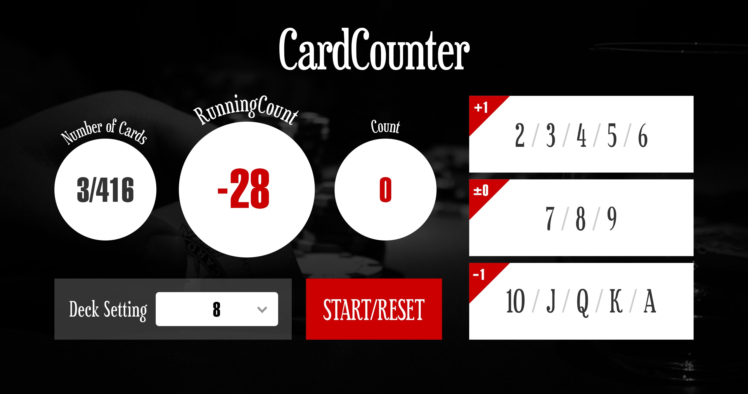Card counting tool available for Blackjack and Baccarat