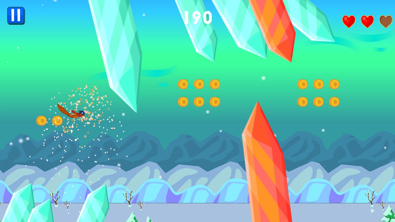 The royal nuts have been stolen! It's up to you, brave squirrel to get them back. You'll have to fly through many dangers and obstacles but only you have the skill to bring back peace and prosperity to the kingdom. Use your flying skills to guide Squirley Squirrel, the amazing flying squirrel through an exciting adventure to get back the nuts.