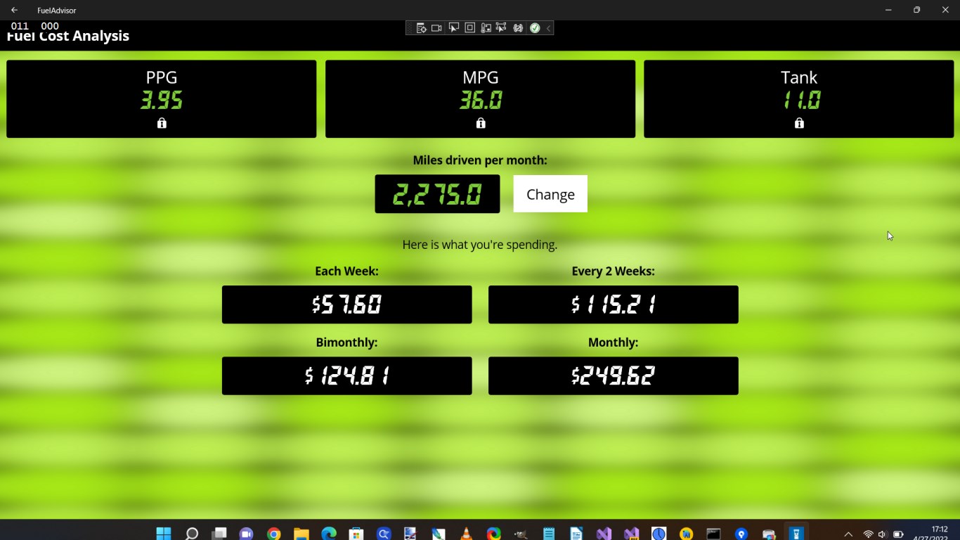 If you’re the kind of motorist who’s organized and keeps a budget, or if you’re not, and you’d just like to get a better idea of what you’re spending at the pump, or if your money is really tight, FuelAdvisor does the math for you. And you can do endless “what-if” calculations just by changing the numbers.