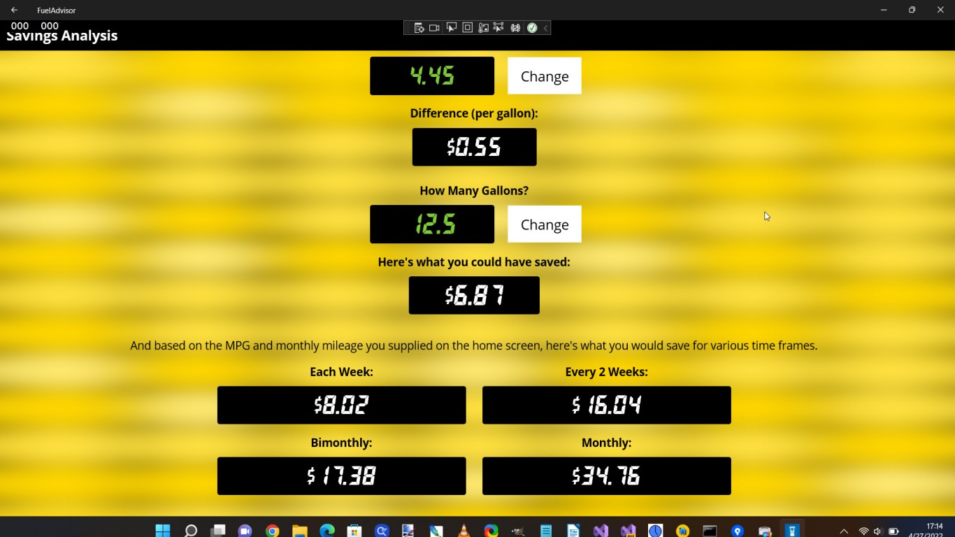 Especially if you depend on driving to make a living – as with a ride-sharing service, food delivery service, or a good old-fashioned taxi – FuelAdvisor can help you spend less on gas by doing the math for you.